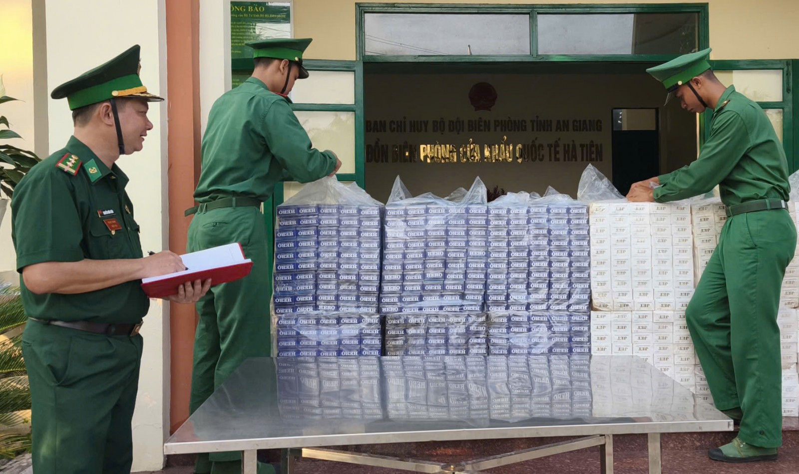 Lúc 2 giờ 30 ngày 1/3, tổ công tác Đội đặc nhiệm phòng, chống ma túy và tội phạm thuộc Phòng Nghiệp vụ, Ban Chỉ huy Bộ đội Biên phòng tỉnh An Giang phối hợp Đồn Biên phòng Cửa khẩu quốc tế Hà Tiên tiến hành tuần tra, phát hiện và thu giữ số lượng lớn thuốc lá nhập lậu.