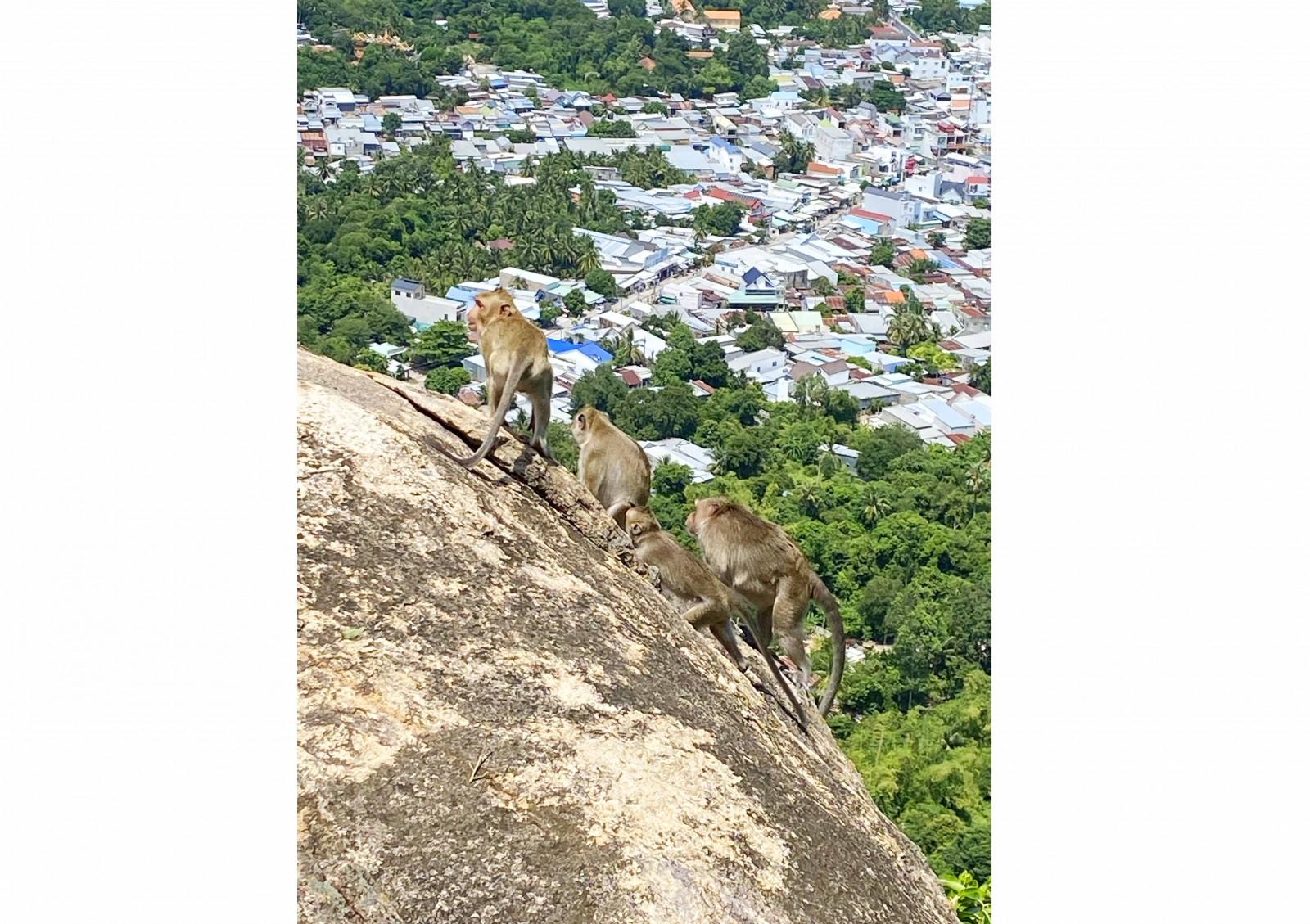 Khỉ thường xuất hiện trên đỉnh Anh Vũ Sơn. Ảnh: THÀNH CHINH