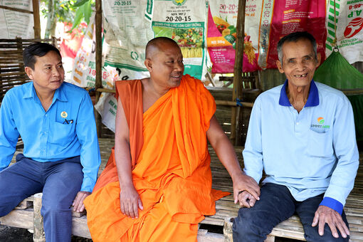 Thượng tọa Chau Diên thăm, động viên ông Chau Don. Ảnh: ĐỨC TOÀN