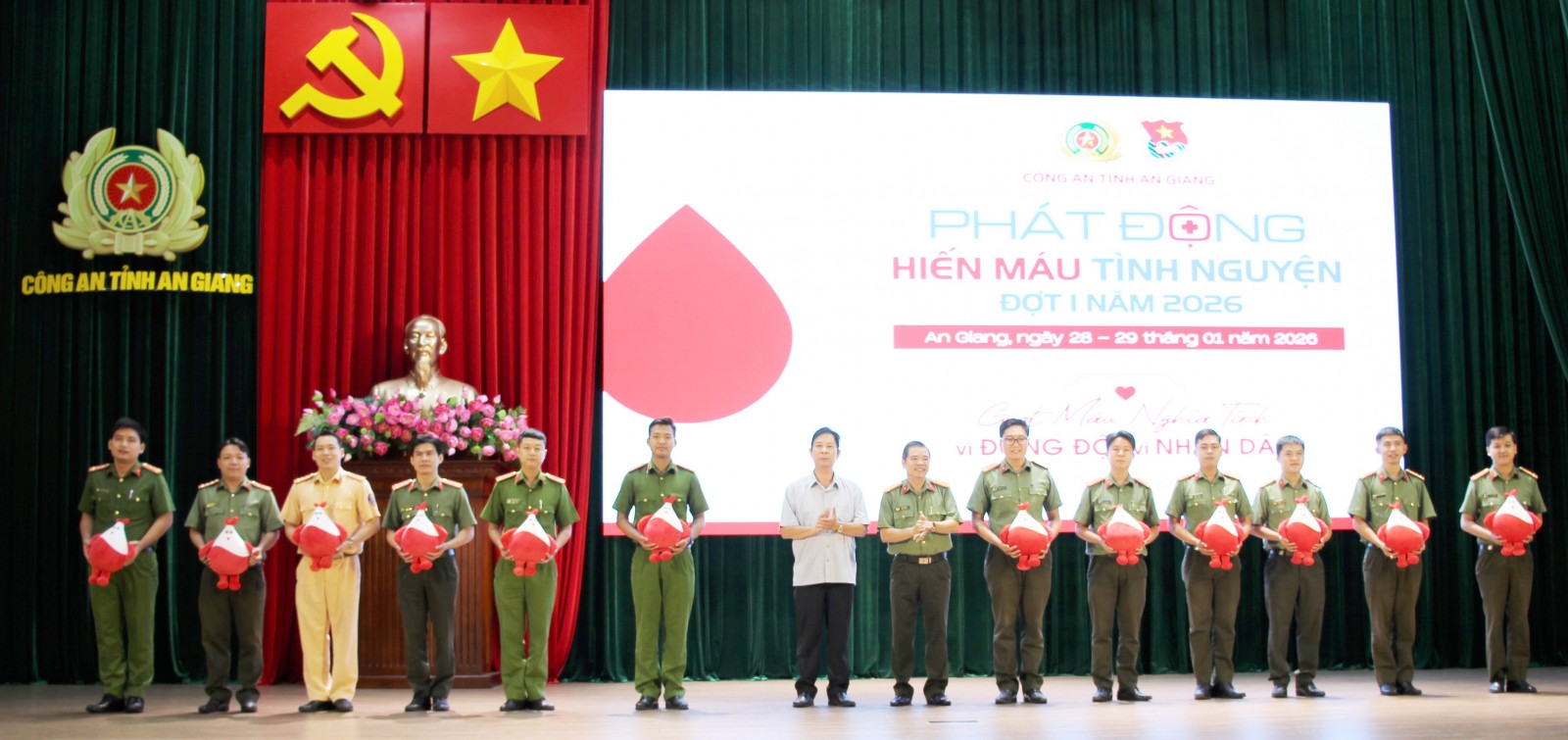 Ngày 29/1, Công an tỉnh An Giang phối hợp Bệnh viện Đa khoa Kiên Giang tổ chức lễ phát động chương trình hiến máu tình nguyện, chủ đề “Giọt máu nghĩa tình vì đồng đội, vì nhân dân”.