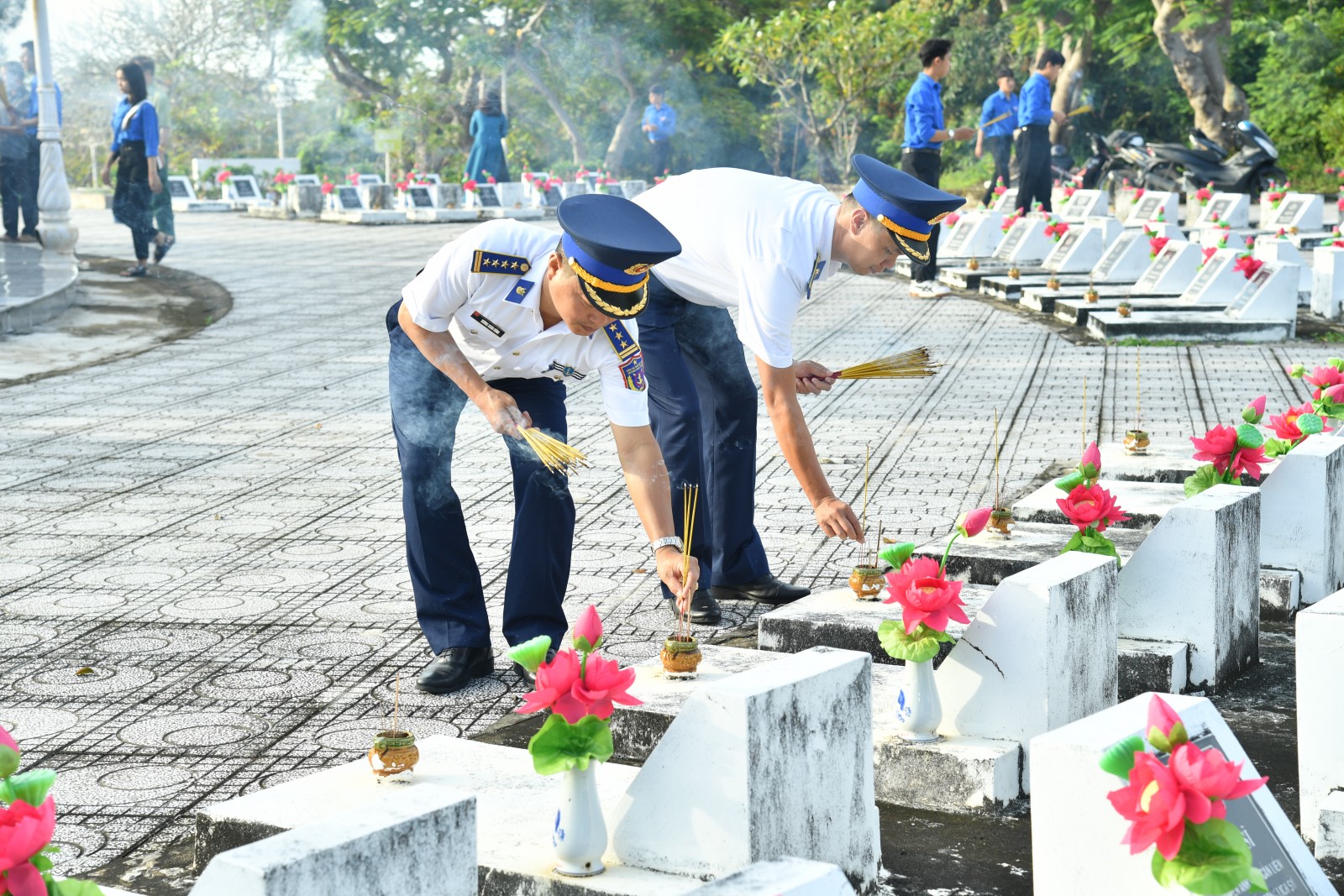 Bộ Tư lệnh Vùng Cảnh sát biển 4 thắp hương mộ liệt sĩ tại Nghĩa trang Liệt sĩ phường Hà Tiên.
