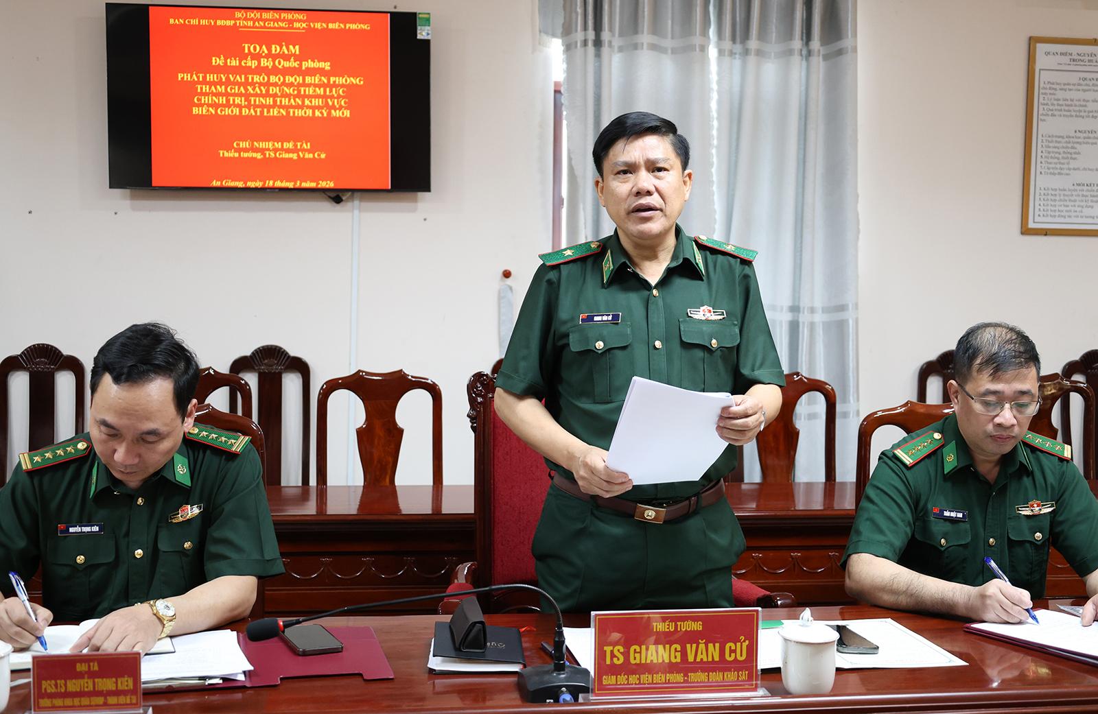 Phát biểu tại tọa đàm, Thiếu tướng, Tiến sĩ Giang Văn Cử khẳng định, xây dựng tiềm lực chính trị, tinh thần khu vực biên giới đất liền là nhiệm vụ có ý nghĩa nền tảng, góp phần giữ vững ổn định xã hội, củng cố niềm tin của nhân dân, phát huy sức mạnh đại đoàn kết toàn dân tộc; trong đó, lực lượng bộ đội biên phòng giữ vai trò đặc biệt quan trọng.
