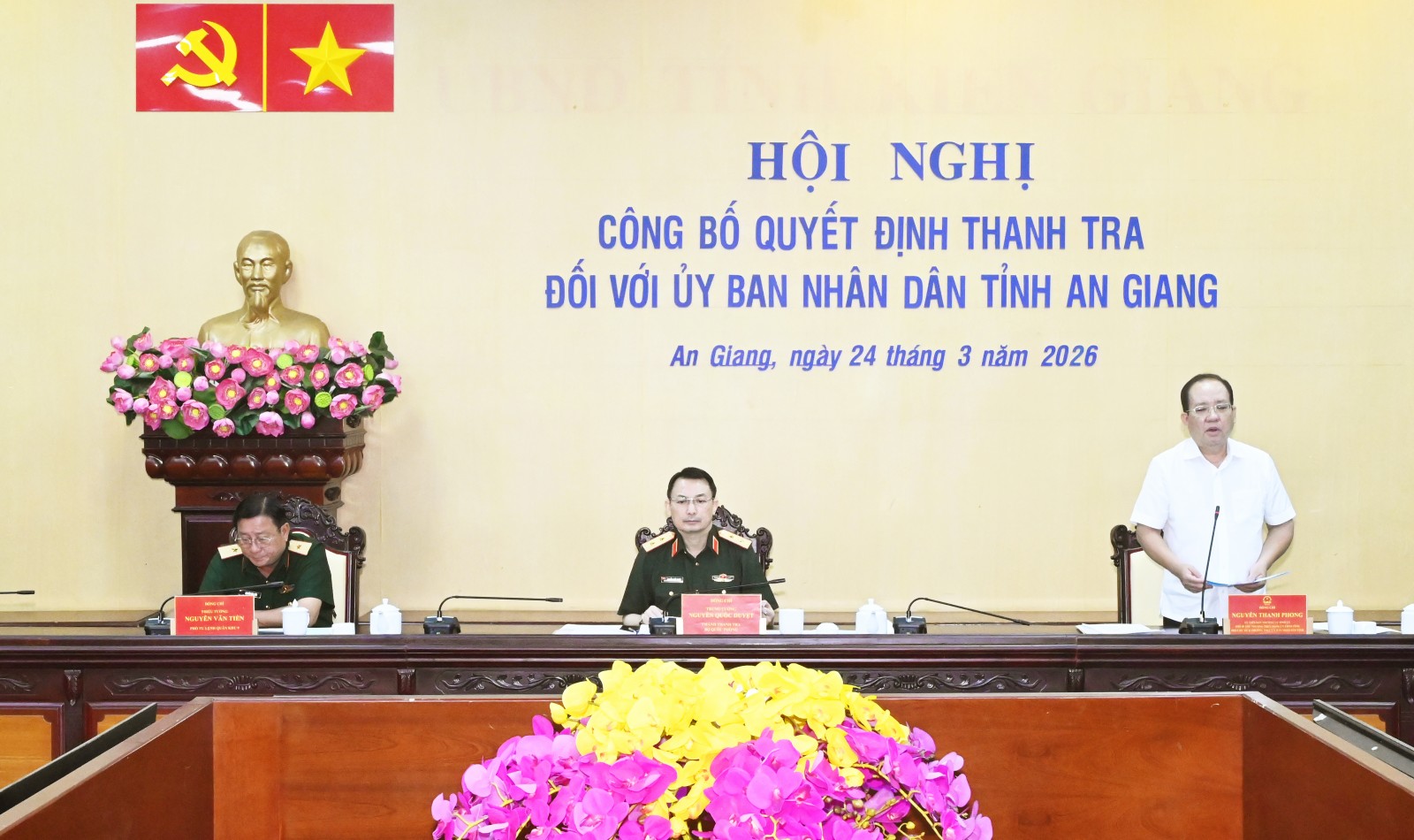 Hội nghị do Trung tướng Nguyễn Quốc Duyệt, Chánh Thanh tra Bộ Quốc phòng chủ trì. Thiếu tướng Nguyễn Văn Tiền, Phó Tư lệnh Quân khu và Ủy viên Ban Thường vụ Tỉnh ủy, Phó Chủ tịch Thường trực UBND tỉnh An Giang Nguyễn Thanh Phong dự hội nghị.