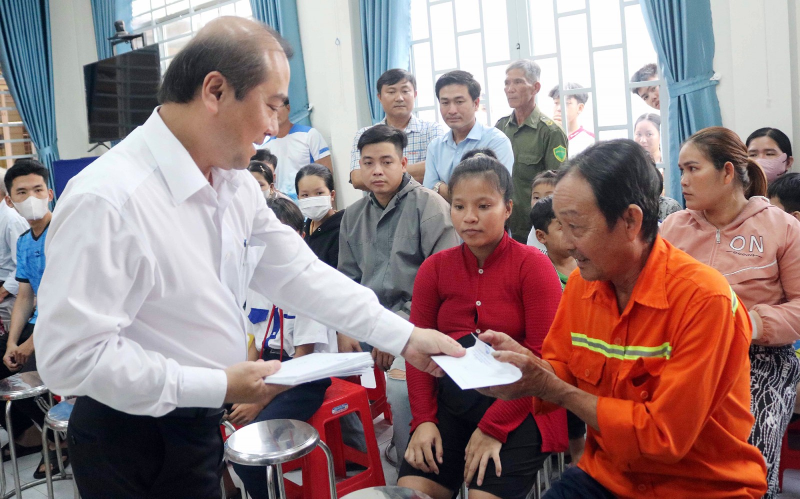Đại biểu Quốc hội Trình Lam Sinh trao quà cho bà con cử tri xã Phú Thuận tháng 1/2025 (nay là xã Phú Hòa). Ảnh: GIA KHÁNH