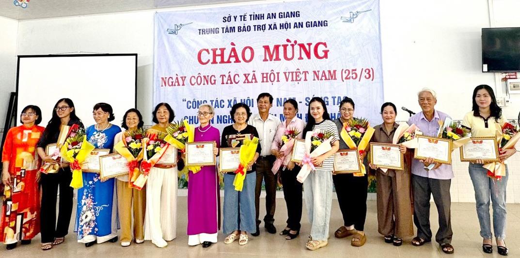 Dịp này, Ban Giám đốc Trung tâm Bảo trợ xã hội tỉnh An Giang biểu dương và tặng hoa, giấy khen 20 nhà hảo tâm, nhà tài trợ; tặng hoa và quà cho cán bộ, viên chức, người lao động, các đối tượng tiêu biểu.