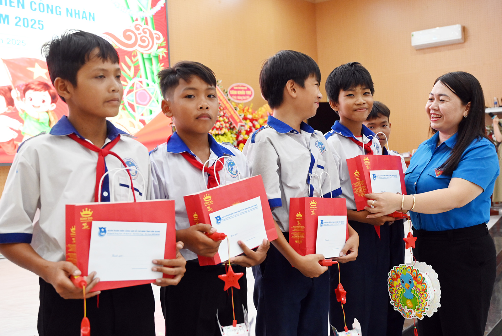 Trung thu không chỉ là dịp để các em nhỏ được rước đèn, phá cỗ, nhận quà mà còn là khoảng thời gian ấm áp để gia đình, cộng đồng cùng thể hiện sự quan tâm, yêu thương dành cho thế hệ măng non, với chủ đề “Lồng đèn thắp sáng ước mơ”, Tỉnh đoàn tổ chức hoạt động Tết Trung thu năm 2025 tại nhiều địa phương trong tỉnh. Phó Bí thư Tỉnh đoàn Dư Phạm Hữu Khuyến cho biết: “Đoàn các cấp trong tỉnh tổ chức nhiều hoạt động vui Tết Trung thu để quan tâm, hỗ trợ thiếu nhi, nhất là trẻ có hoàn cảnh khó khăn, thuộc hộ nghèo, con thanh niên công nhân; trẻ em vùng sâu, vùng xa, biên giới, hải đảo; trẻ em có hoàn cảnh đặc biệt khó khăn. Thông qua hỗ trợ các suất quà trung thu gồm lồng đèn, bánh, kẹo, sữa; hỗ trợ đồ dùng học tập, sách, vở, học bổng, đồng phục, giúp học sinh có điều kiện tốt đến trường”.