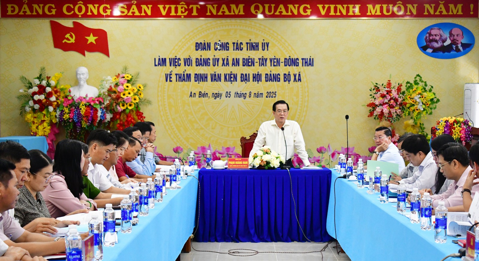 Trưởng ban Tổ chức Tỉnh ủy làm việc với các xã Đông Thái, Tây Yên và An Biên