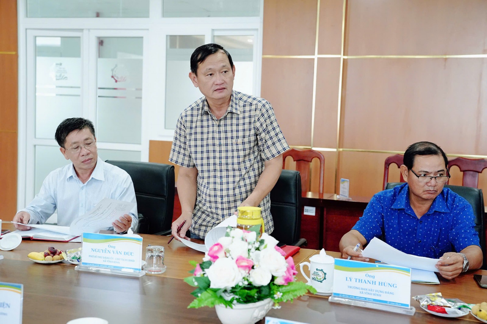Phó Bí thư Đảng ủy, Chủ tịch UBND xã Vĩnh Bình Nguyễn Văn Đức trao đổi tại buổi làm việc.