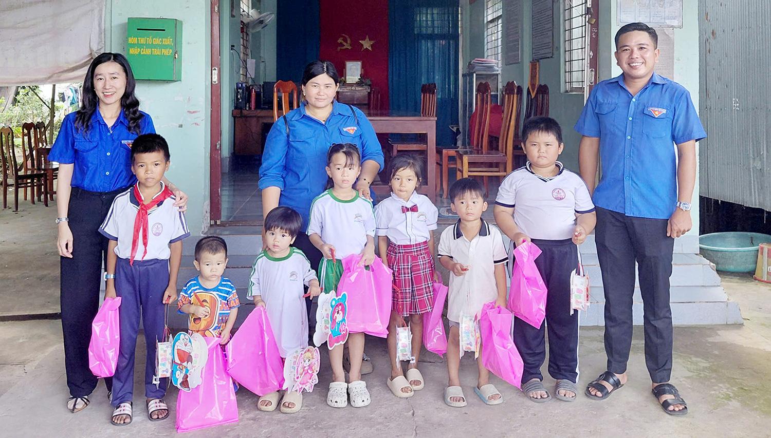 Xã đoàn Khánh Bình trao quà trung thu cho thiếu nhi. Ảnh: TRỌNG TÍN