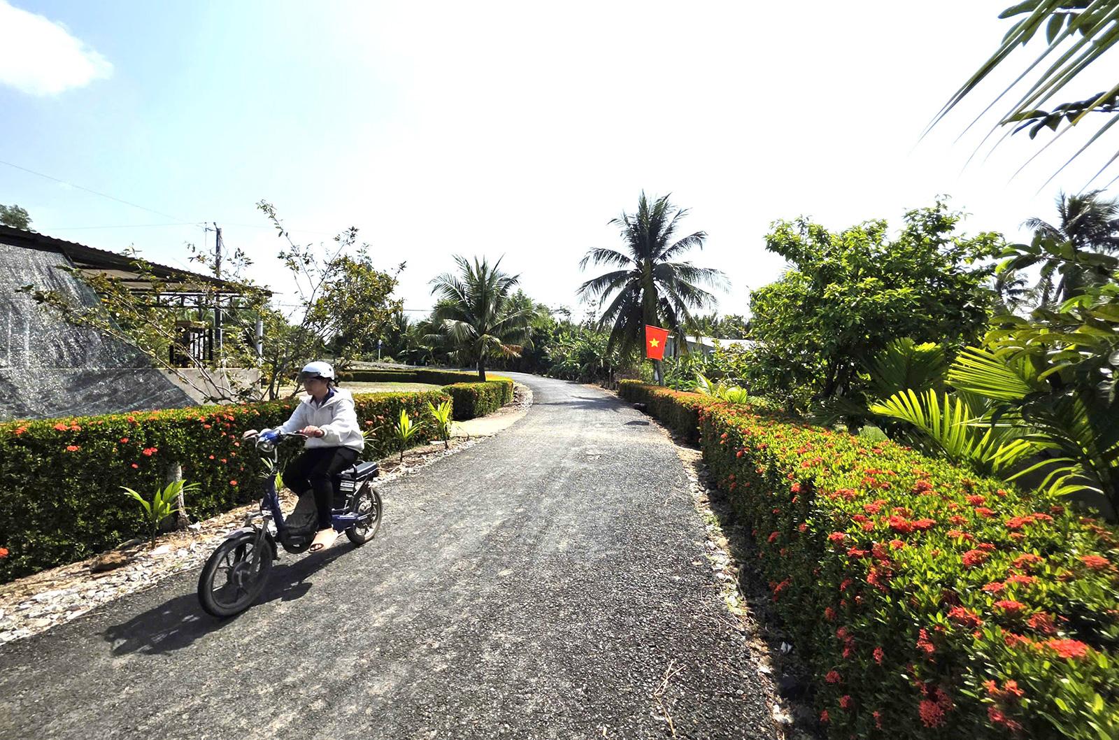 Đến thăm mô hình tuyến đường xanh, sạch, đẹp dài hơn 1,5km tại tổ 7, ấp Chiến Thắng, có thể cảm nhận rõ sự đổi thay của vùng quê nơi đây. Những tuyến đường liên xã, đường giao thông trong ấp được mở rộng, đổ bê tông sạch đẹp; hai bên đường được phủ xanh bằng hàng cây, cùng với bông mười giờ, bông giấy, sao nhái khoe sắc rực rỡ. Tuyến đường còn được lắp đặt hệ thống đèn chiếu sáng kết hợp cột cờ. Vào dịp lễ, tết, người dân đồng loạt treo cờ Tổ quốc, tạo nên cảnh quan nông thôn yên bình, tươi đẹp.