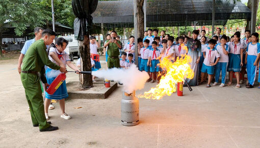 Ngày 22/9, Công an phường Thới Sơn (tỉnh An Giang) tổ chức tuyên truyền, hướng dẫn kỹ năng phòng cháy, chữa cháy cho khoảng 330 cán bộ, giáo viên, nhân viên và học sinh củaTrường Tiểu học Bán trú “A” Nhà Bàng.