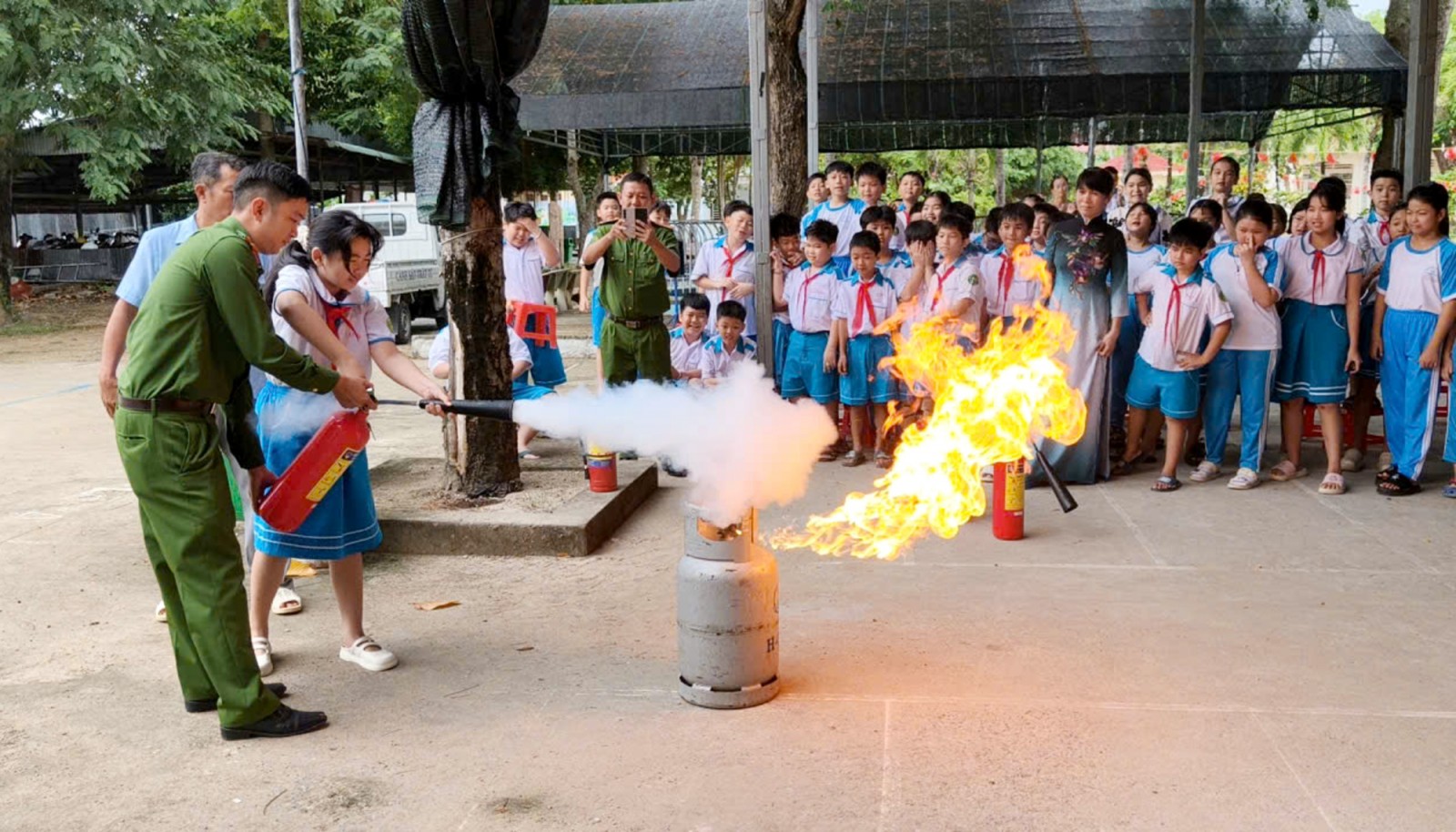 Hoạt động này không chỉ giúp giáo viên, học sinh nâng cao ý thức tự bảo vệ bản thân và người xung quanh, mà còn góp phần xây dựng môi trường học đường an toàn, lành mạnh. Đồng thời, lan tỏa tinh thần trách nhiệm cộng đồng, khẳng định thông điệp “Mỗi người dân là một chiến sĩ phòng cháy, chữa cháy”.
