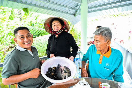 Lãnh đạo ấp Kinh Năm, xã U Minh Thượng thăm hỏi đời sống người dân trong ấp. Ảnh: THỦY TIÊN