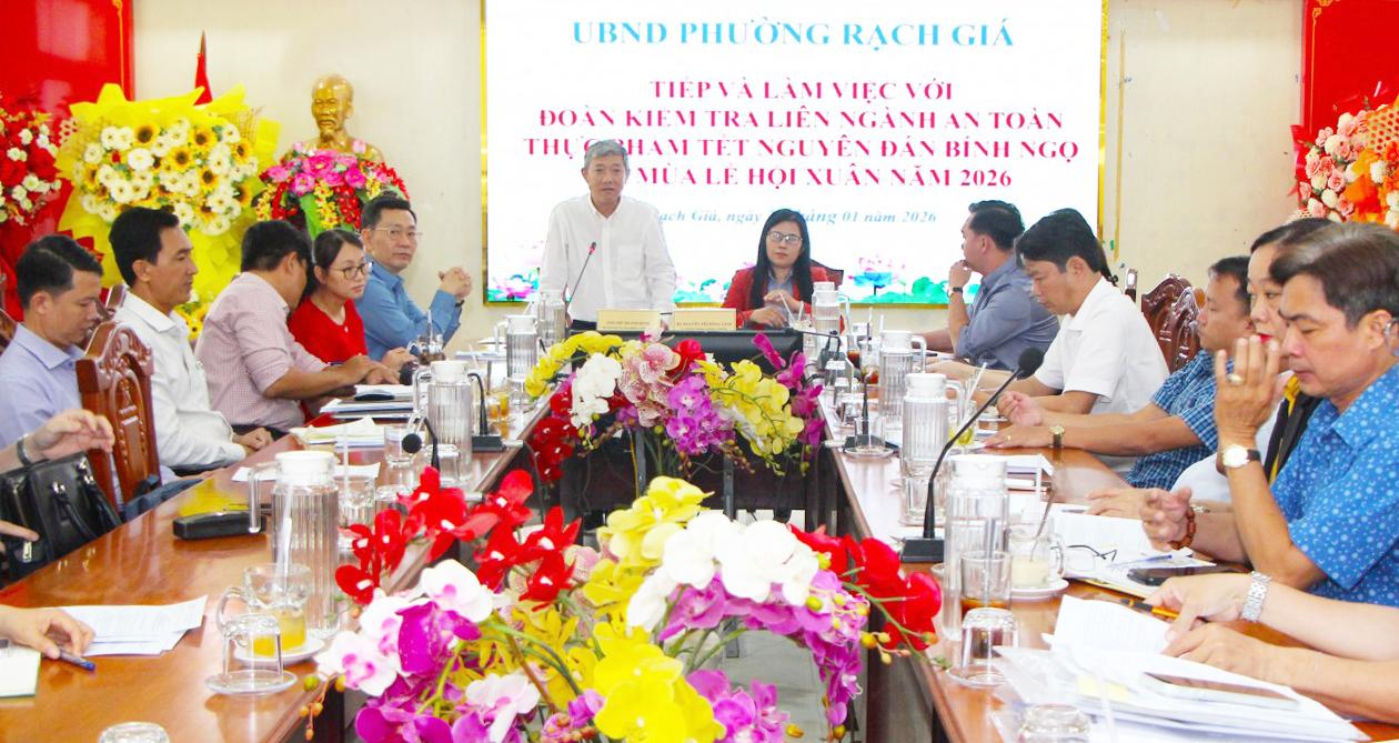 Chiều 28/1, đoàn kiểm tra liên ngành tỉnh An Giang đã làm việc với UBND phường Rạch Giá về công tác bảo đảm an toàn thực phẩm dịp Tết Nguyên đán Bính Ngọ và mùa Lễ hội Xuân 2026.