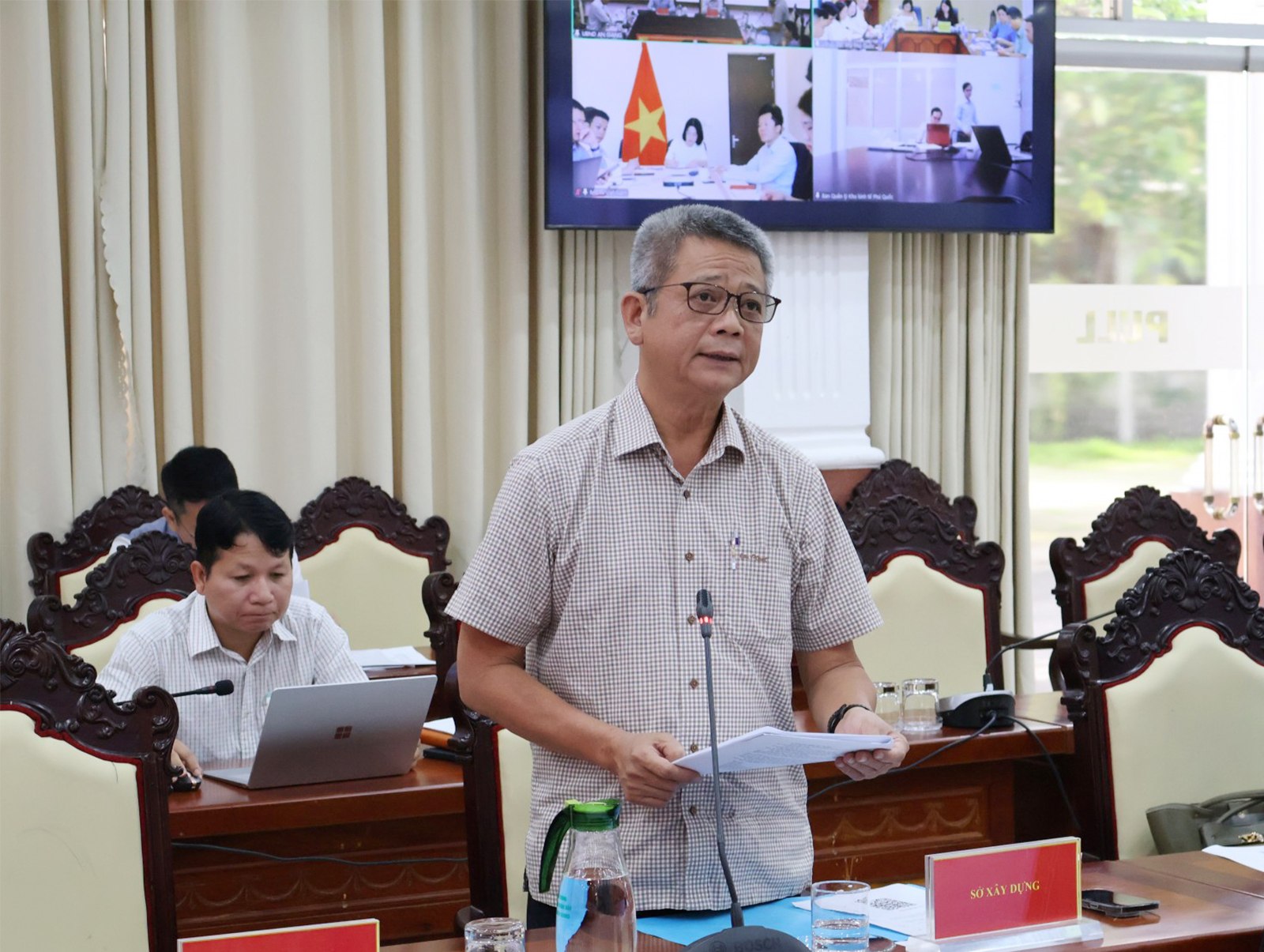 Phó Giám đốc Sở Xây dựng tỉnh An Giang Nguyễn Quốc Cường báo cáo tiến độ các dự án.
