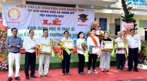 Tại buổi lễ, đã vinh danh 7 thạc sĩ, 284 tân sinh viên là con em quê hương xã Nhơn Mỹ đã tốt nghiệp thạc sĩ và đỗ đại học năm 2025. Mỗi thạc sĩ, tân sinh viên nhận một suất quà trị giá 300.000 đồng, với tổng kinh phí 84,3 triệu đồng.