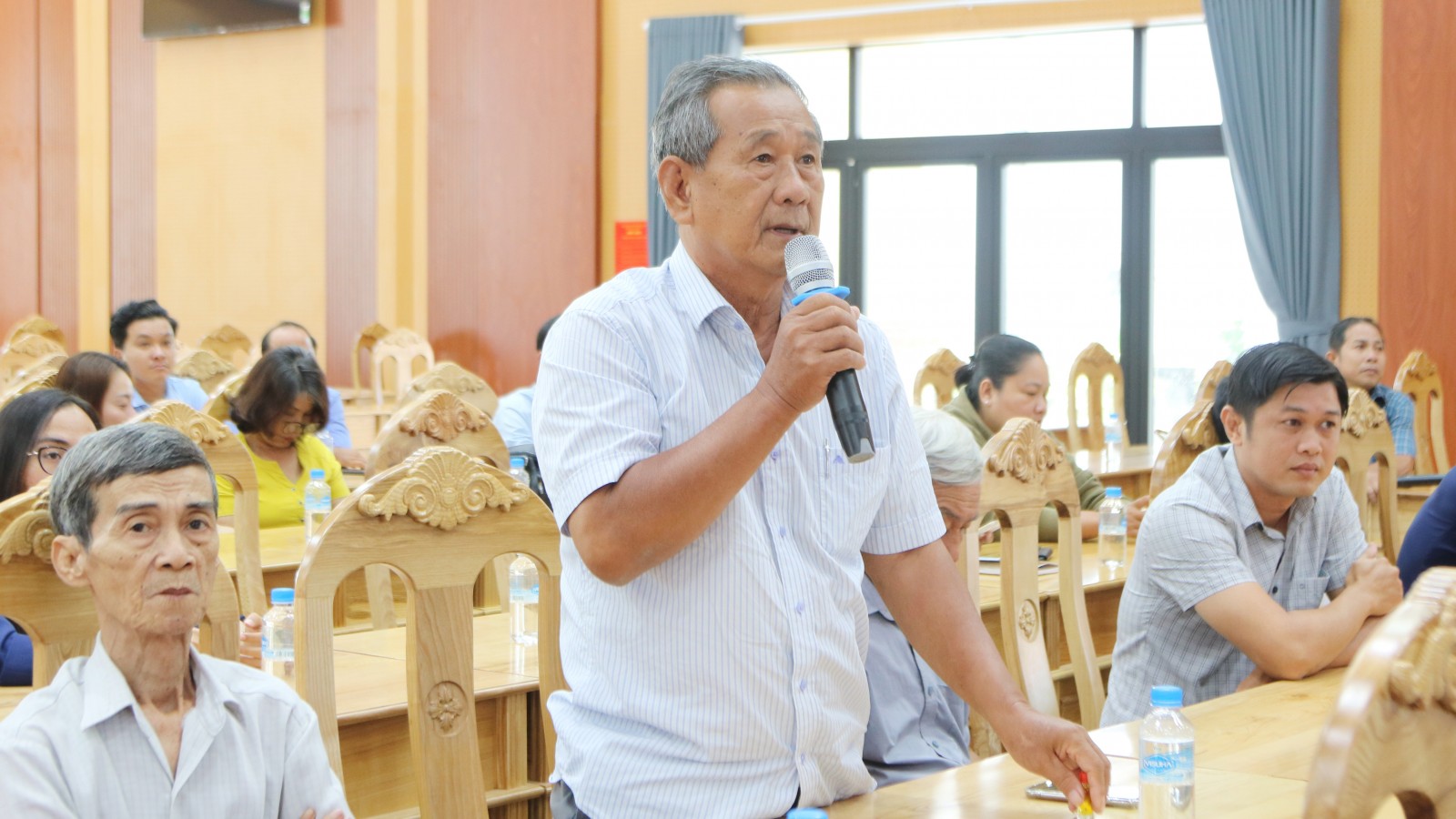 Cử tri Vương Văn Phận, ngụ khu phố I - Bình San, phường Hà Tiên phát biểu tại buổi tiếp xúc cử tri.