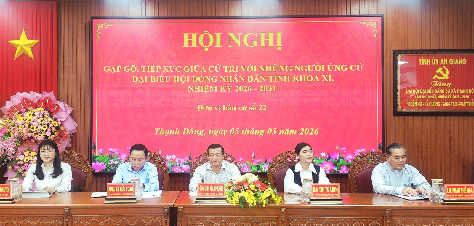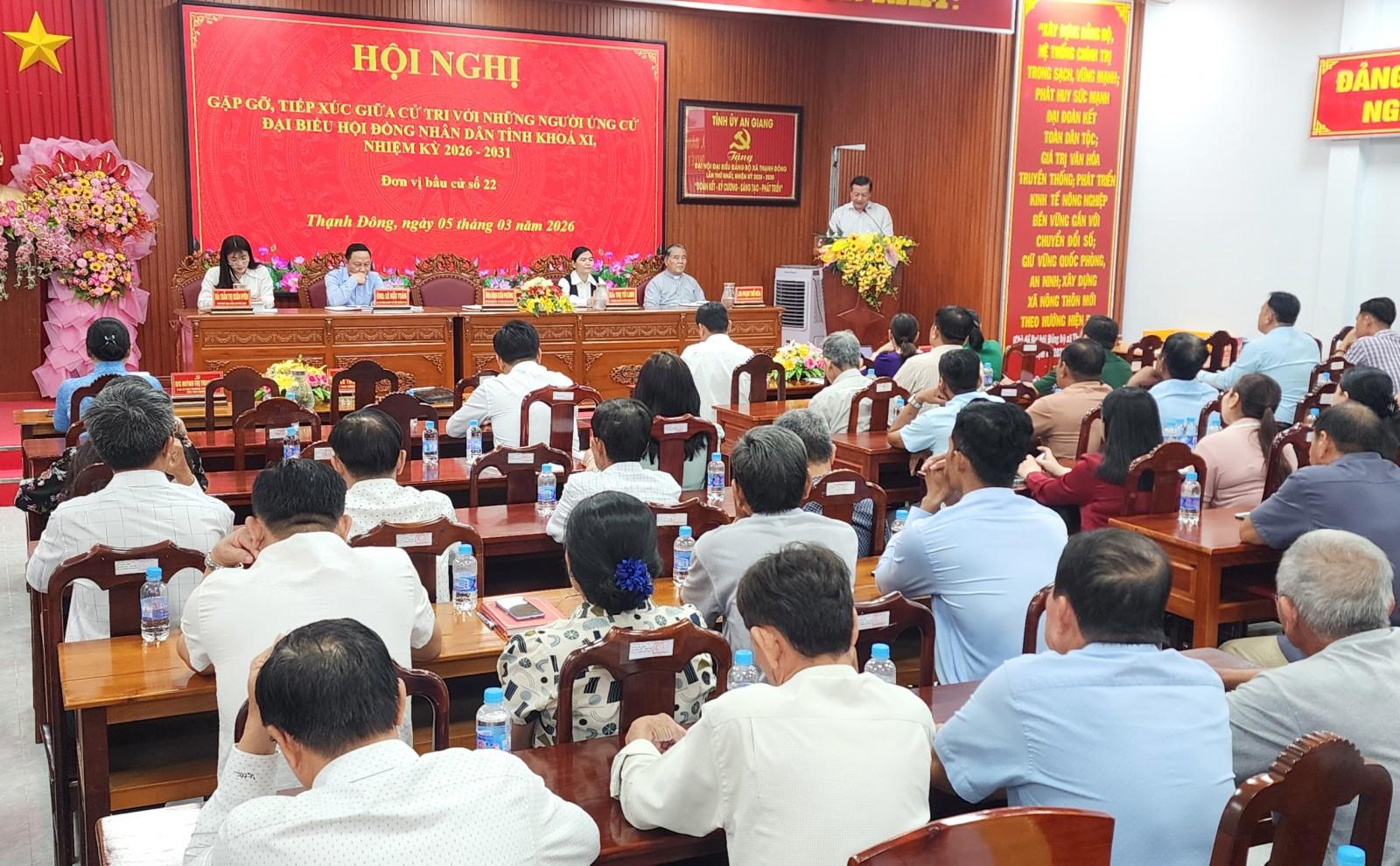Ngày 5/3, Ban Thường trực Ủy ban MTTQ Việt Nam xã Thạnh Đông (tỉnh An Giang) tổ chức Hội nghị gặp gỡ, tiếp xúc giữa cử tri với những người ứng cử đại biểu HĐND tỉnh khóa XI, nhiệm kỳ 2026 - 2031 (đơn vị bầu cử số 22).