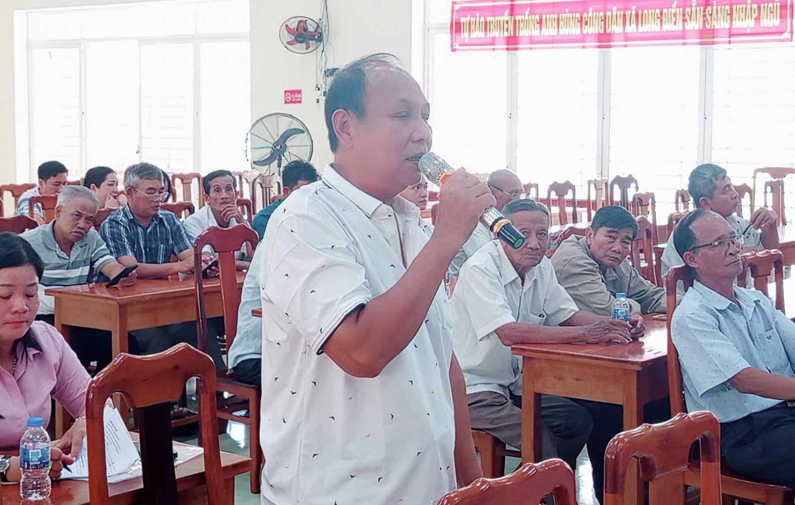 Cử tri xã Long Điền kiến nghị tại buổi tiếp xúc.