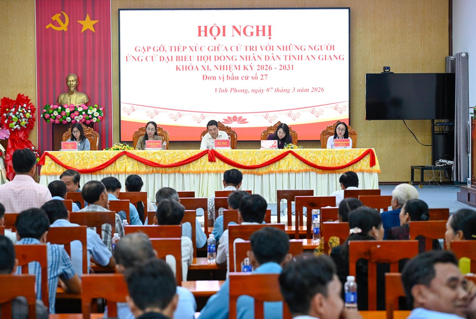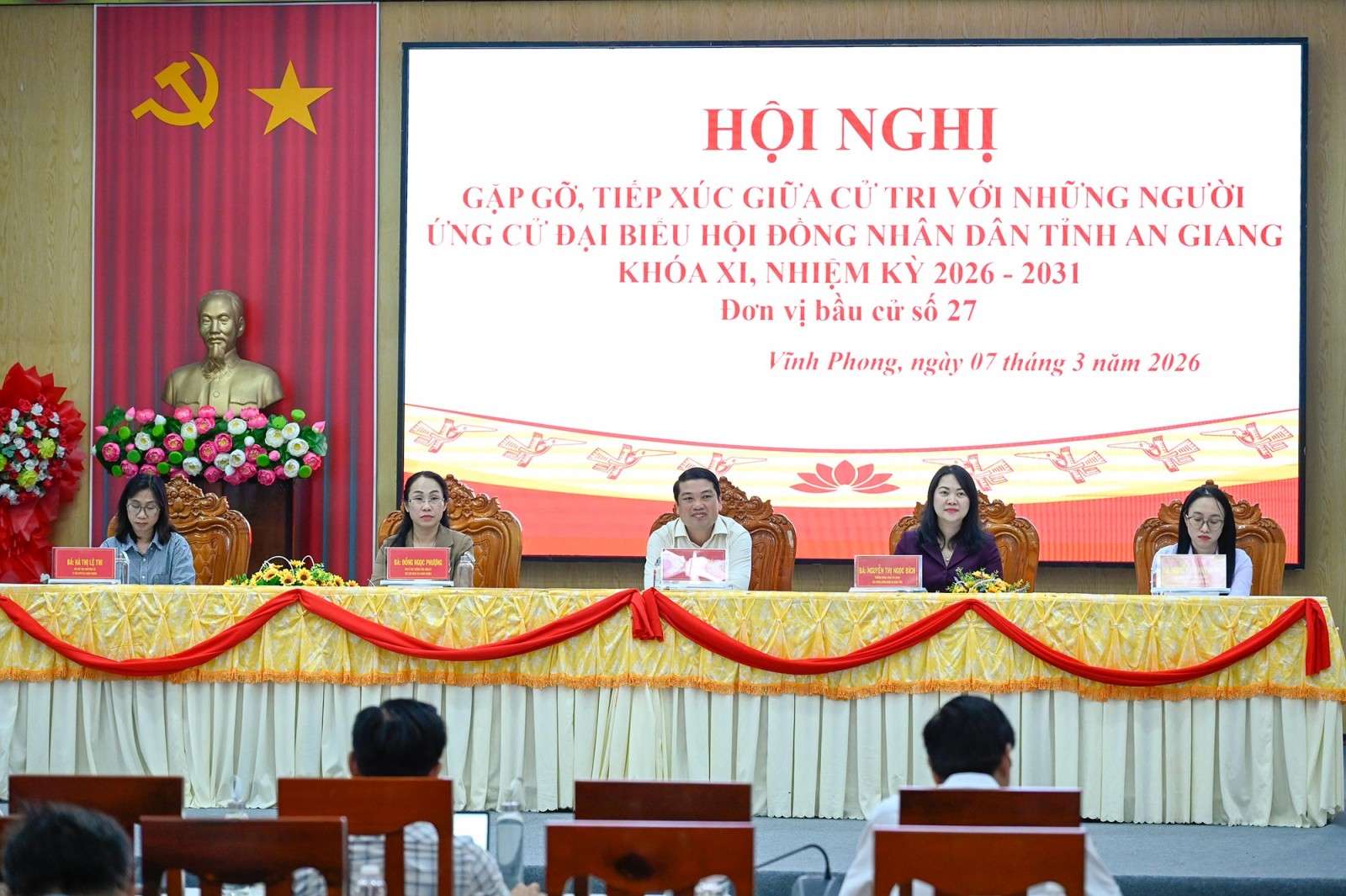 Các ứng cử viên đại biểu HĐND tỉnh đơn vị bầu cử số 27 gồm: Ông Lê Trung Hồ, Tỉnh ủy viên, Phó Chủ tịch UBND tỉnh An Giang; bà Nguyễn Thị Ngọc Bích, Trưởng phòng Công tác HĐND, Văn phòng ĐBQH và HĐND tỉnh; bà Nguyễn Thị Huỳnh Mai, công chức Phòng Công tác HĐND, Văn phòng ĐBQH và HĐND tỉnh; bà Đồng Ngọc Phượng, Phó Bí thư Thường trực Đảng ủy, Chủ tịch HĐND xã U Minh Thượng; bà Hà Thị Lệ Thi, Phó Chủ tịch Ủy ban MTTQ Việt Nam xã, Chủ tịch Hội Liên hiệp Phụ nữ xã U Minh Thượng.