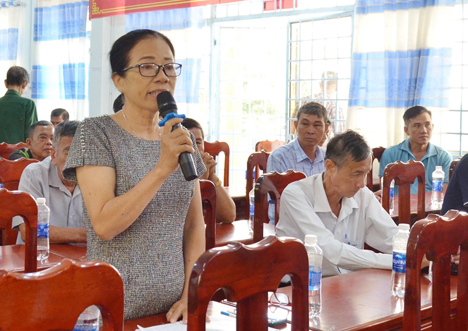 Cử tri Trần Thị Hồng, ngụ khu phố 4, phường Vĩnh Thông kiến nghị tại hội nghị tiếp xúc cử tri.