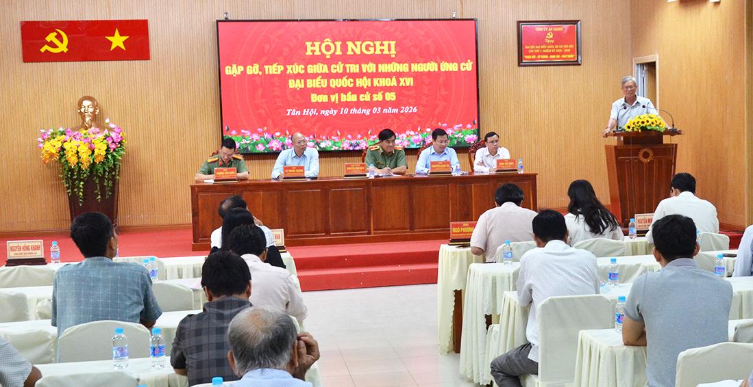 Chiều 10/3, những người ứng cử đại biểu Quốc hội khóa XVI, nhiệm kỳ 2026 - 2031, đơn vị bầu cử số 5 tiếp xúc cử tri tại xã Tân Hội để vận động bầu cử. Cử tri xã Tân Hội bày tỏ sự tin tưởng, đồng tình với nội dung chương trình hành động của các ứng cử viên đại biểu Quốc hội.
