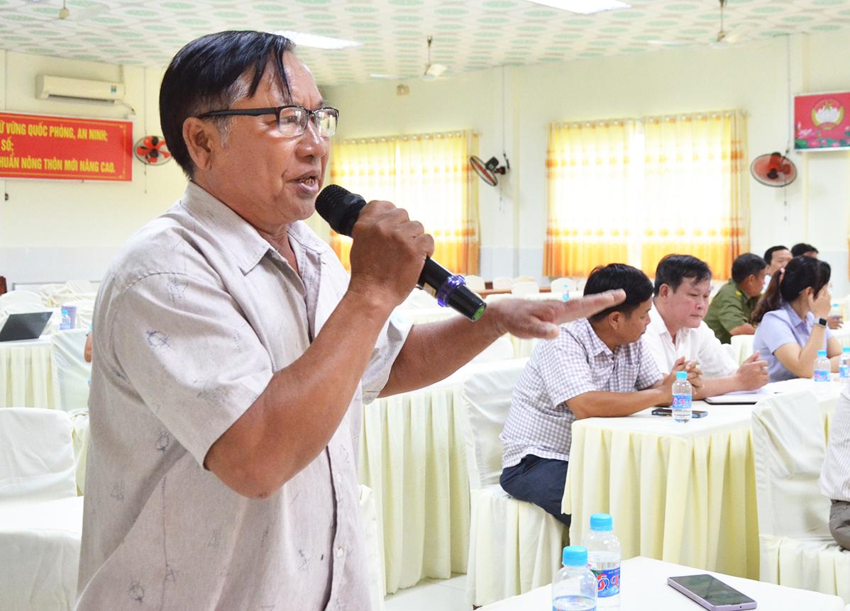 Cử tri Trần Văn Ngân, ngụ ấp Tân An kiến nghị tại hội nghị tiếp xúc cử tri.