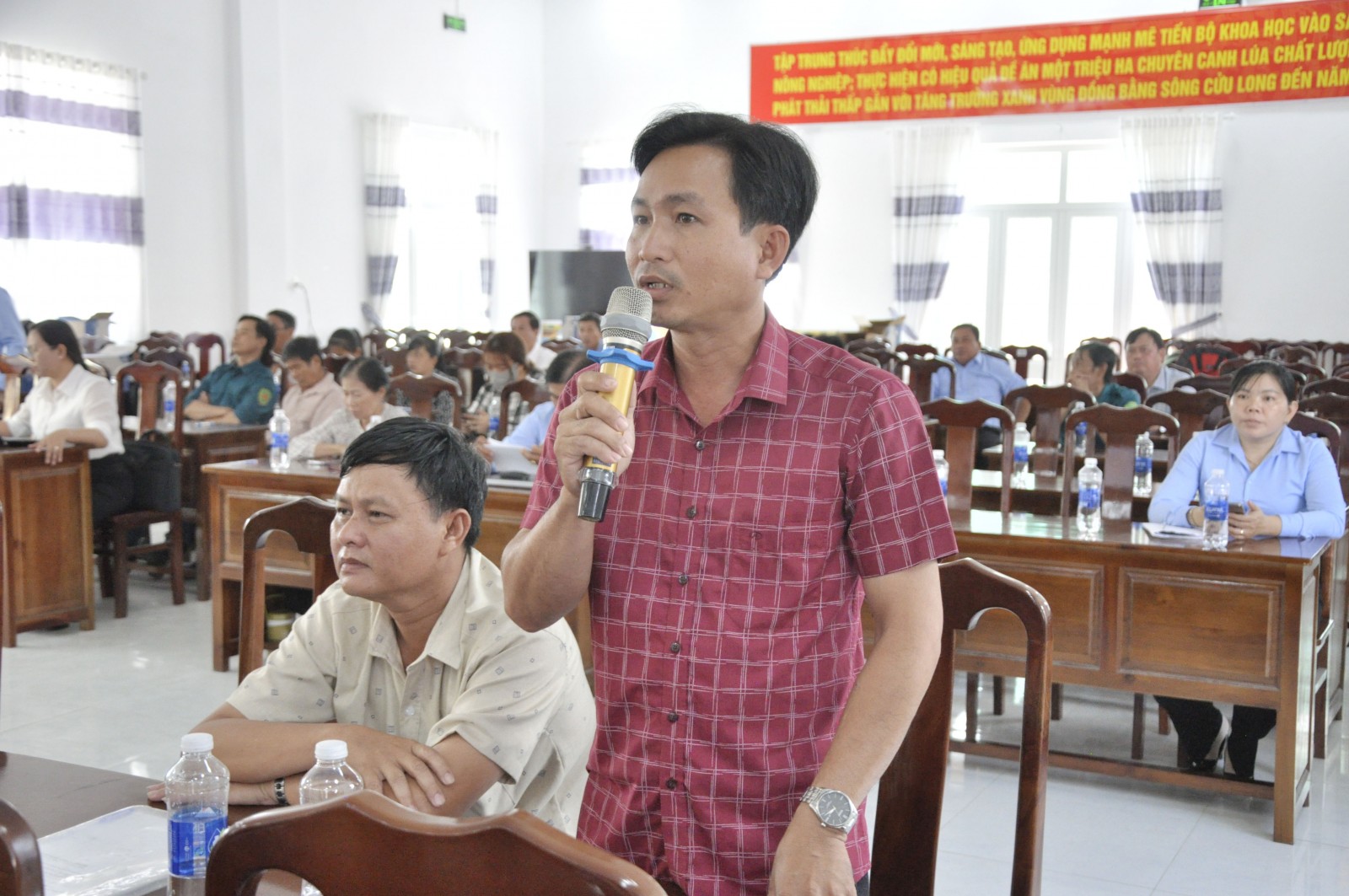 Cử tri xã Thạnh Hưng phát biểu ý kiến tại hội nghị.