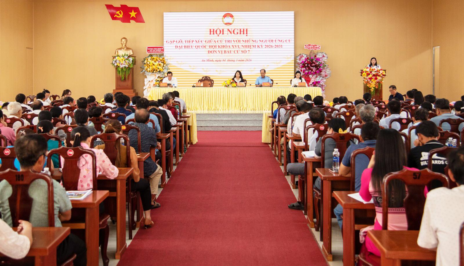 Các ứng cử viên đại biểu Quốc hội khóa XVI đơn vị bầu cử số 7, gồm: Bà Nguyễn Quỳnh Liên, Trưởng Ban Dân chủ, Giám sát và Phản biện xã hội, Ủy viên Đoàn Chủ tịch Ủy ban Trung ương MTTQ Việt Nam, Phó Chủ nhiệm Hội đồng Tư vấn Dân chủ - Pháp luật Ủy ban Trung ương MTTQ Việt Nam; ông Nguyễn Việt Thắng, Phó Chủ nhiệm Thường trực Ủy ban Kiểm tra Tỉnh ủy An Giang, kiêm Chủ nhiệm Ủy ban Kiểm tra Đảng ủy Các cơ quan Đảng tỉnh, Ủy viên Ủy ban Pháp luật và Tư pháp của Quốc hội; bà Nguyễn Ngọc Duy Lam, Phó trưởng Phòng Nghiệp vụ I, Ủy ban Kiểm tra Tỉnh ủy An Giang; ông Nguyễn Mạnh Hùng, Phó Giám đốc Công ty TNHH MTV An Bảo tại đặc khu Phú Quốc; bà Huỳnh Kim Minh Tâm, Trưởng phòng Chỉ đạo tuyến Bệnh viện Đa khoa Kiên Giang.