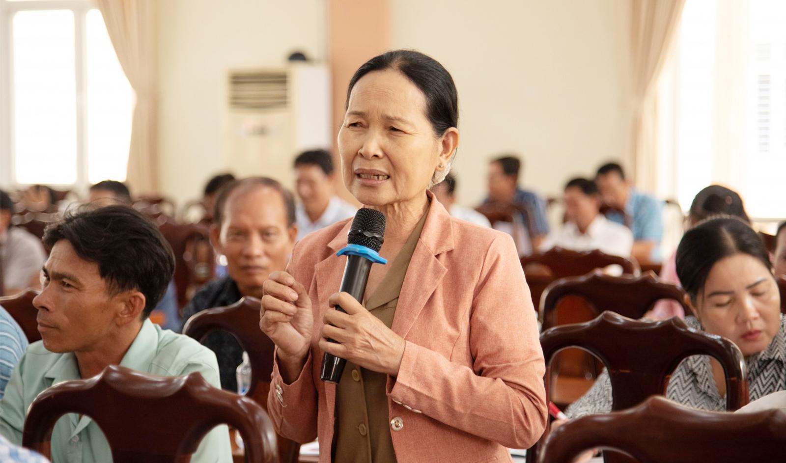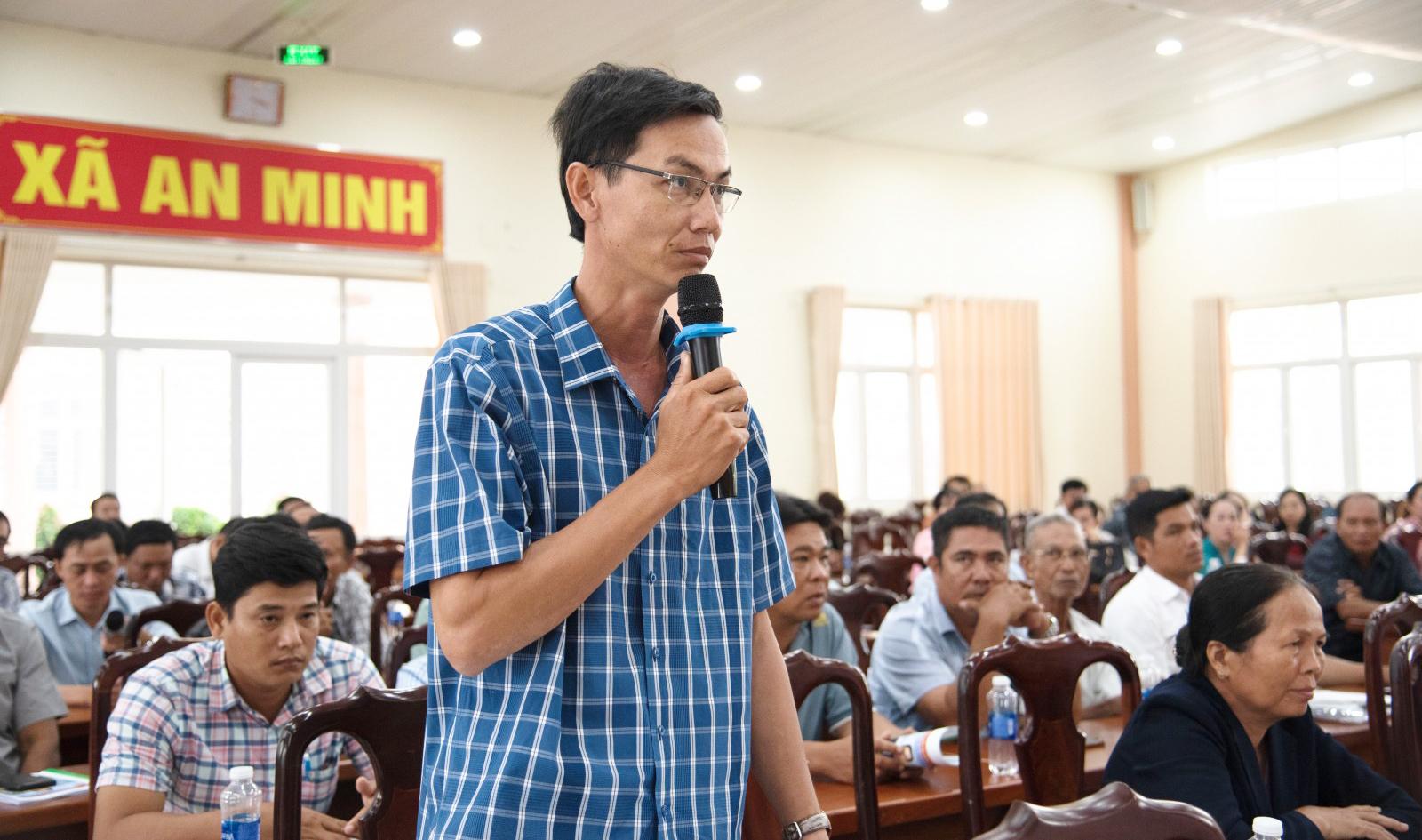 Cử tri Danh Nguyễn Thắng, ngụ ấp Kim Quy A2 phát biểu tại hội nghị.