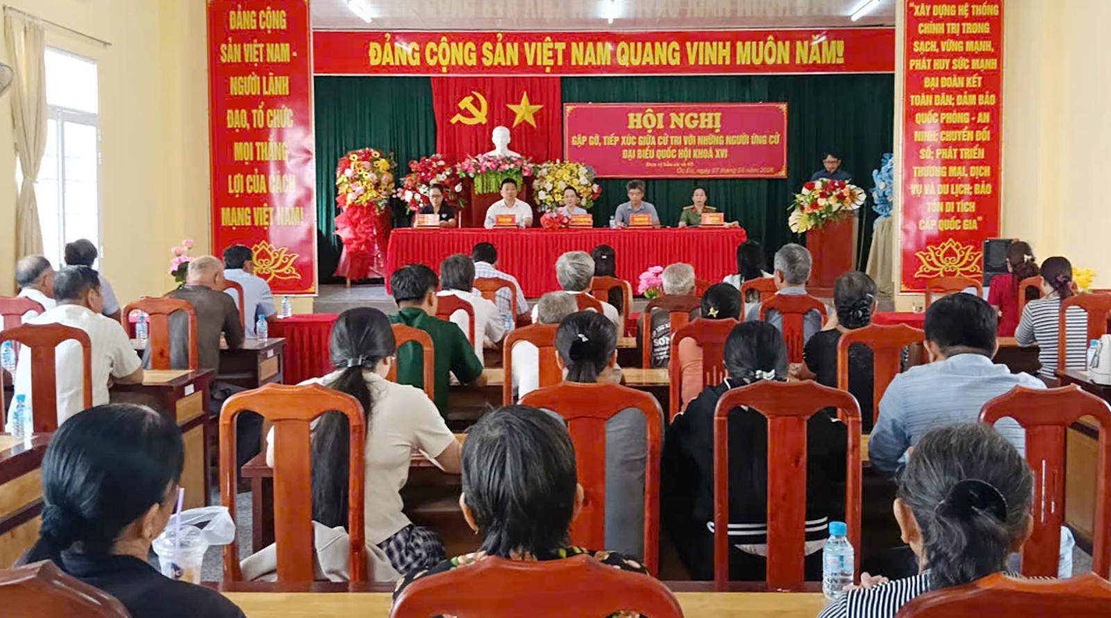 Chiều cùng ngày, các ứng cử viên đại biểu Quốc hội đơn vị bầu cử số 3 tiếp xúc cử tri xã Óc Eo.
