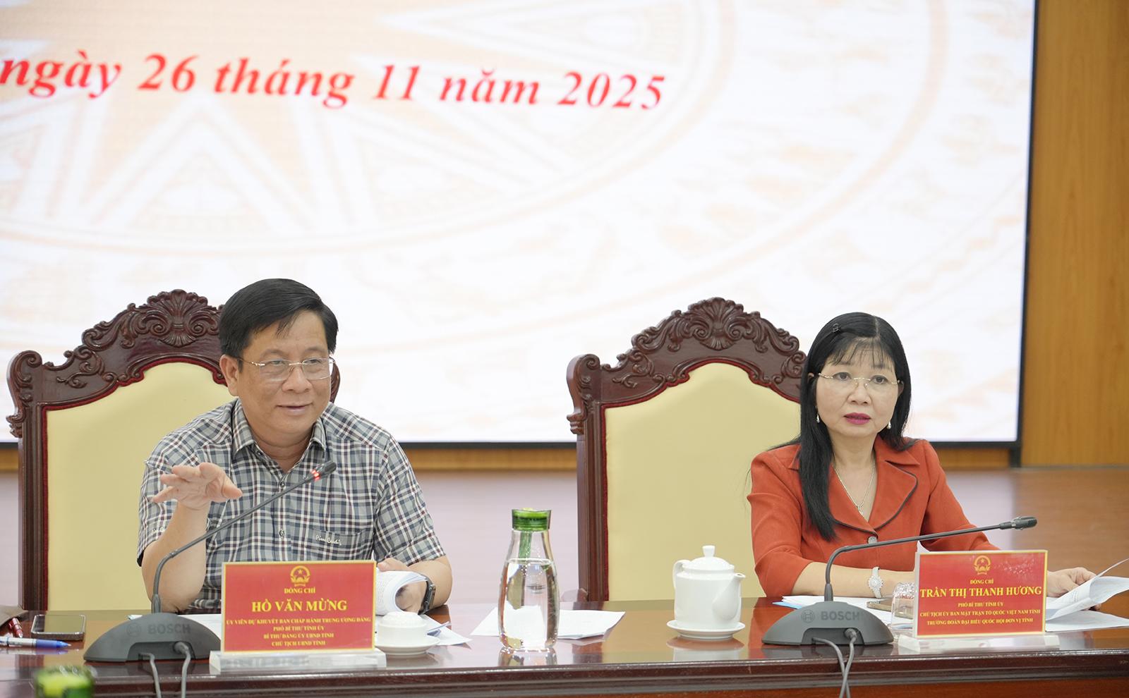 Ủy viên dự khuyết Ban Chấp hành Trung ương Đảng, Phó Bí thư Tỉnh ủy, Chủ tịch UBND tỉnh, Chủ tịch Ủy ban Bầu cử tỉnh An Giang Hồ Văn Mừng và Phó Bí thư Tỉnh ủy, Trưởng đoàn đại biểu Quốc hội đơn vị tỉnh An Giang, Chủ tịch Ủy ban MTTQ Việt Nam tỉnh An Giang Trần Thị Thanh Hương chủ trì cuộc họp.