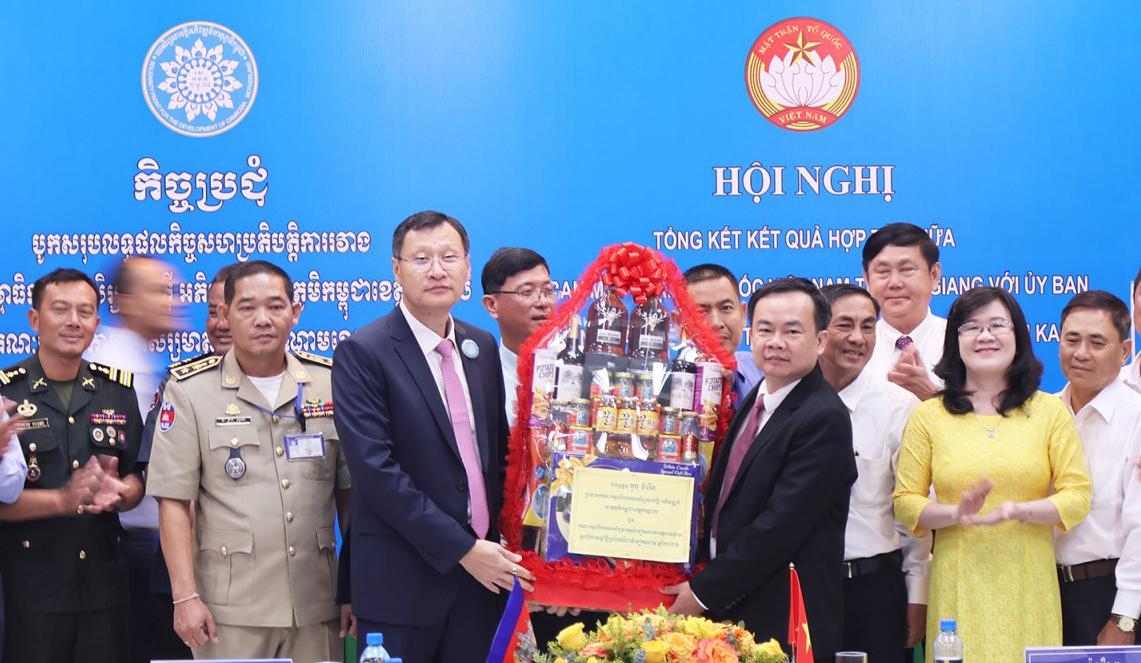 Ủy ban Mặt trận Đoàn kết Phát triển Tổ quốc Campuchia tỉnh Kandal (Vương Quốc Campuchia) tặng quà Ủy ban MTTQ Việt Nam tỉnh An Giang.