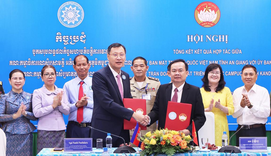 Hội nghị tổng kết kết quả hợp tác về thực hiện Bản ghi nhớ hợp tác xây dựng đường biên giới Việt Nam - Campuchia hòa bình, hữu nghị, hợp tác cùng phát triển giữa Ủy ban MTTQ Việt Nam tỉnh An Giang với Ủy ban Mặt trận Đoàn kết Phát triển Tổ quốc Campuchia tỉnh Kandal giai đoạn 2023 - 2025.