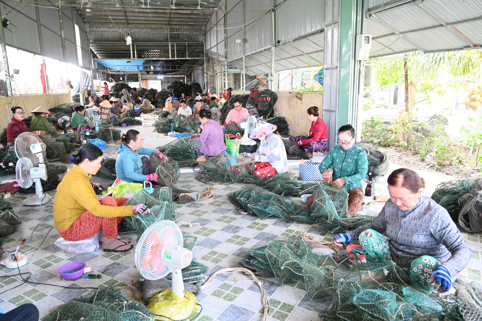 Trong nhà xưởng 240m2, hơn 50 chị em trong Đội vá lưới ấp Vàm Rầy, xã Bình Sơn miệt mài vá hàng ngàn chiếc lú bị hư hỏng sau chuyến đánh bắt dài ngày. Công việc này góp phần giải quyết việc làm, tăng thu nhập cho phụ nữ vùng ven biển, nhất là phụ nữ cao tuổi.
