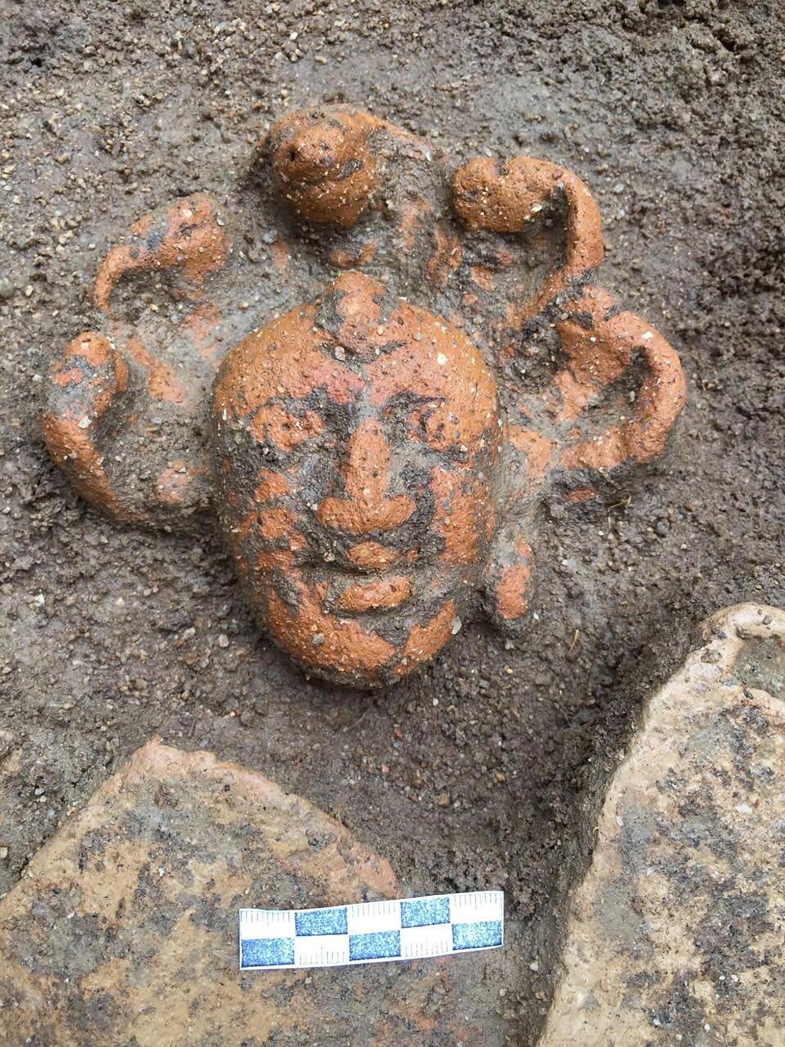 Hiện vật đầu tượng Phật Linh Sơn Bắc được tìm thấy tại hố khai quật. Ảnh: PHƯƠNG LAN