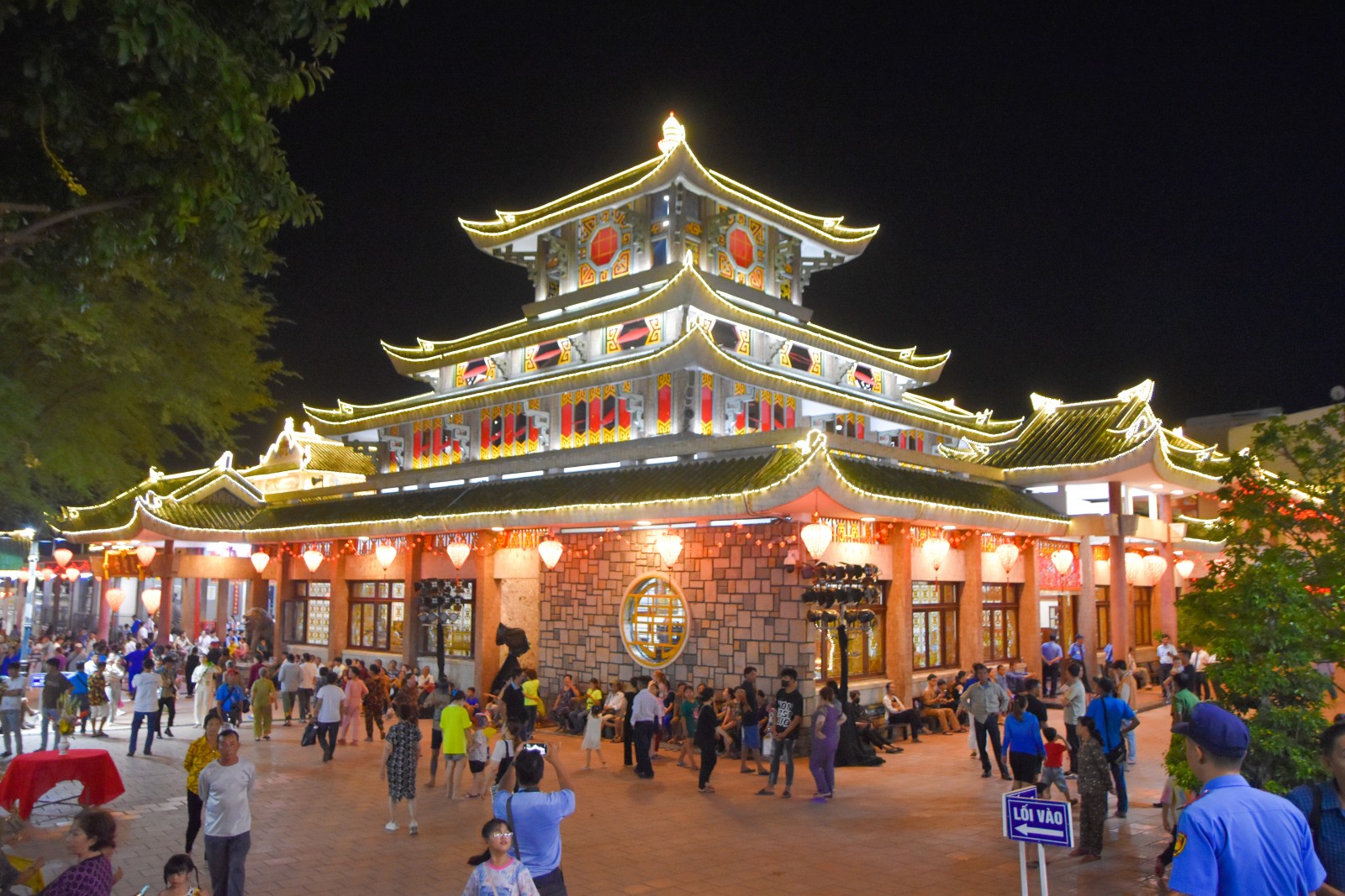 Rất đông du khách đến viếng Chúa xứ Thánh Mẫu về đêm. Ảnh: THANH TIẾN