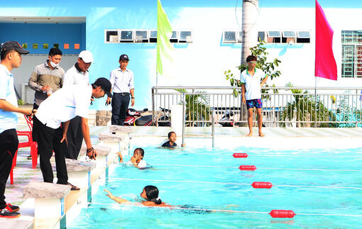 Xã An Châu tổ chức giải bơi cho học sinh nhằm rèn luyện kỹ năng bơi, giảm thiểu tai nạn đuối nước ở trẻ em. Ảnh: LÊ TRUNG HIẾU