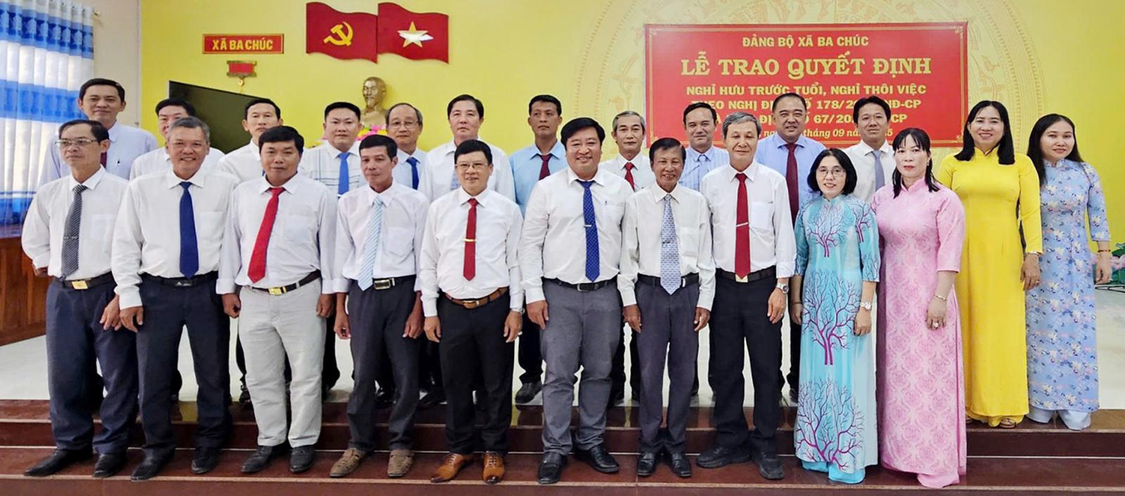 Tại hội nghị, Đảng ủy, HĐND, UBND, UBMTTQVN xã Ba Chúc đã công bố và trao quyết định nghỉ hưu trước tuổi, nghỉ thôi việc theo Nghị định số 178 và Nghị định số 67 cho 7 đồng chí thuộc các cơ quan khối Đảng, đoàn thể; 8 đồng chí thuộc cơ quan UBND xã.