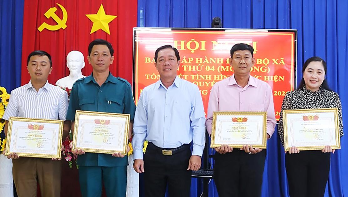 Bí thư Đảng ủy, Chủ tịch HĐND xã Cần Đăng Trần Tấn Phương tặng giấy khen cho 4 tập thể đạt tiêu chuẩn trong sạch, vững mạnh năm 2025.