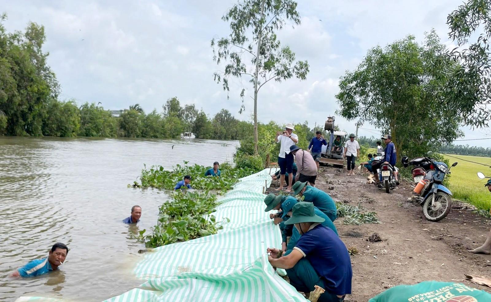 Cùng ngày, Đồn Biên phòng Lạc Quới phối hợp chính quyền xã Ba Chúc, người dân ấp Vĩnh Hòa tiến hành đắp đê tạm, gia cố bờ bãi với chiều dài khoảng 200m, nhằm ngăn nước tràn vào ruộng, đe dọa trực tiếp đến khoảng 2ha ruộng ớt đang trong giai đoạn sắp thu hoạch của nông dân.