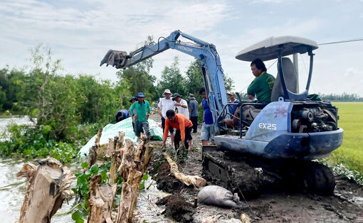 Xã Cô Tô, xã Ba Chúc huy động lực lượng gia cố đê bao tại các điểm xung yếu