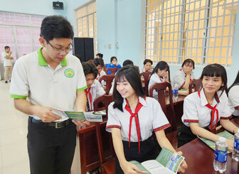 Các em học sinh được tư vấn hướng nghiệp tại ngày hội.