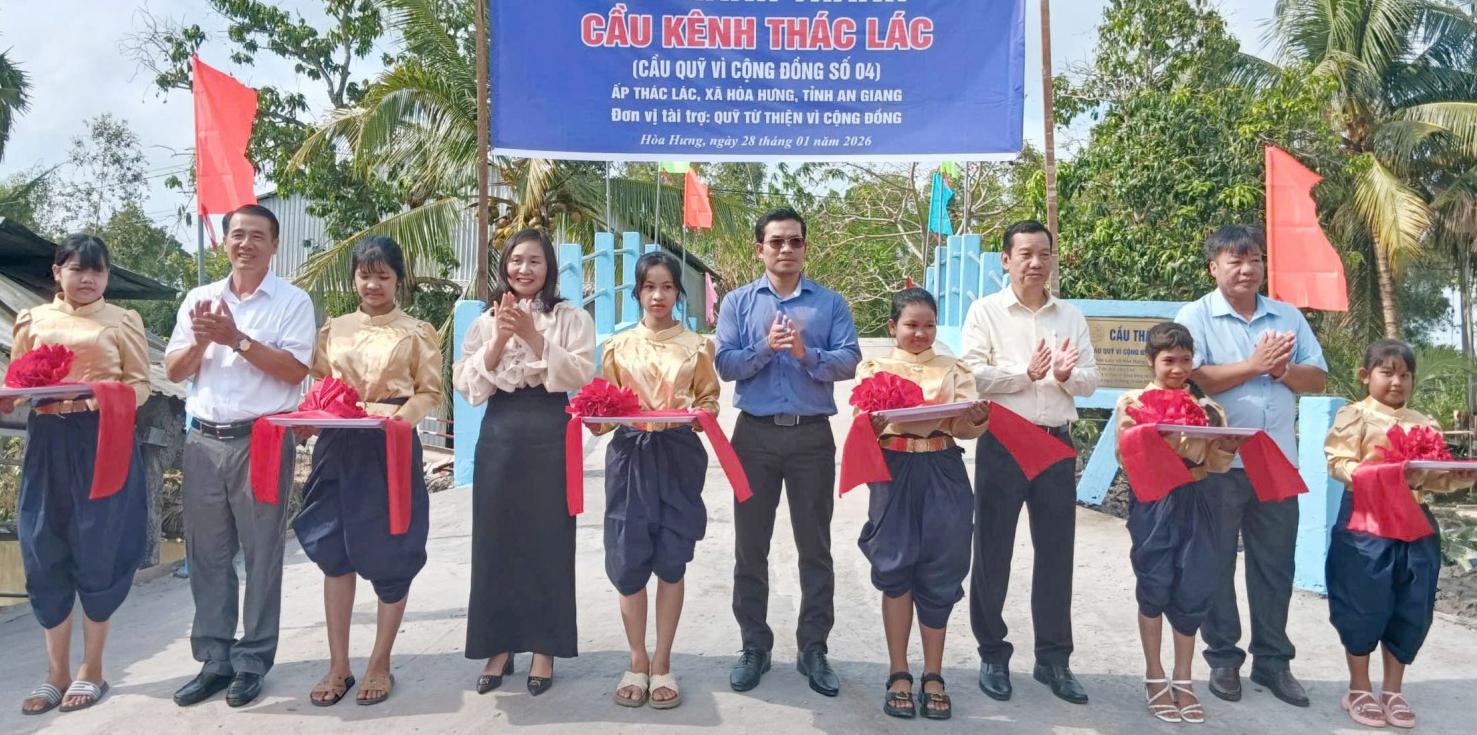 Ngày 28/1, UBND xã Hòa Hưng (tỉnh An Giang) phối hợp Quỹ Từ thiện Vì cộng đồng tổ chức khánh thành cầu Kênh Thác Lác tại ấp Thác Lác và cầu Kênh Thủy Lợi tại ấp Hòa Phú.