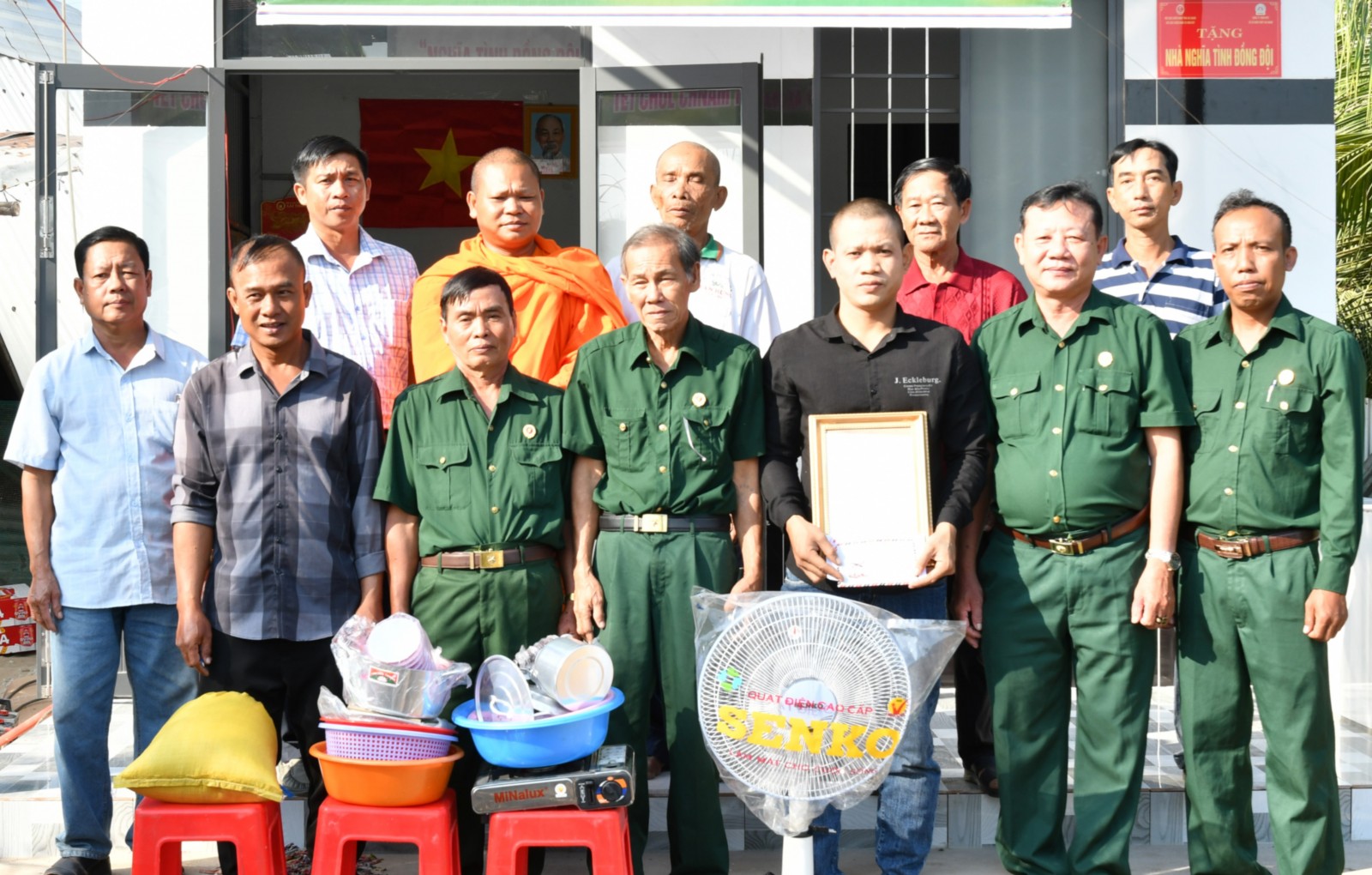 Dịp này, Hội Cựu chiến binh xã Hòn Đất, Chùa khmer Lình Huỳnh trao tặng thêm các phần quà, nhu yếu phẩm cho gia đình.