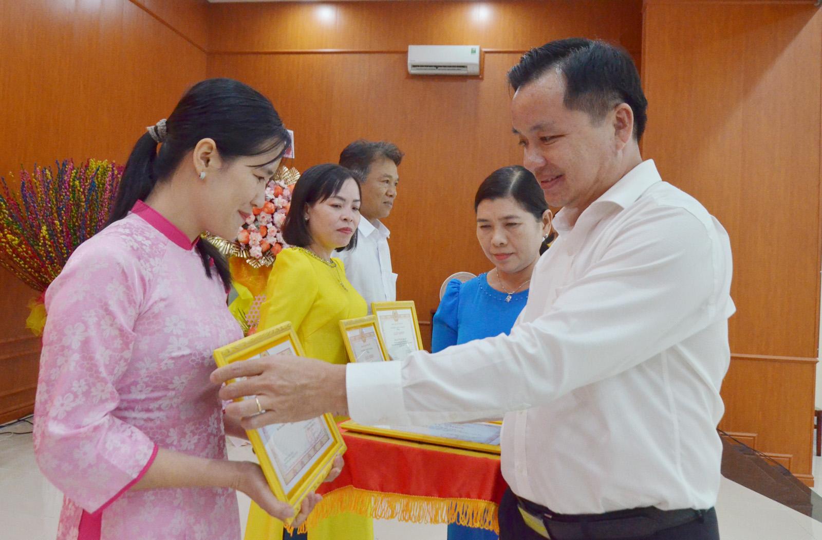 Ủy viên Ban Thường vụ Tỉnh ủy, Chủ nhiệm Ủy ban Kiểm tra Tỉnh ủy Huỳnh Quốc Thái trao Huân chương Lao động hạng Ba cho 2 cá nhân có thành tích xuất sắc.