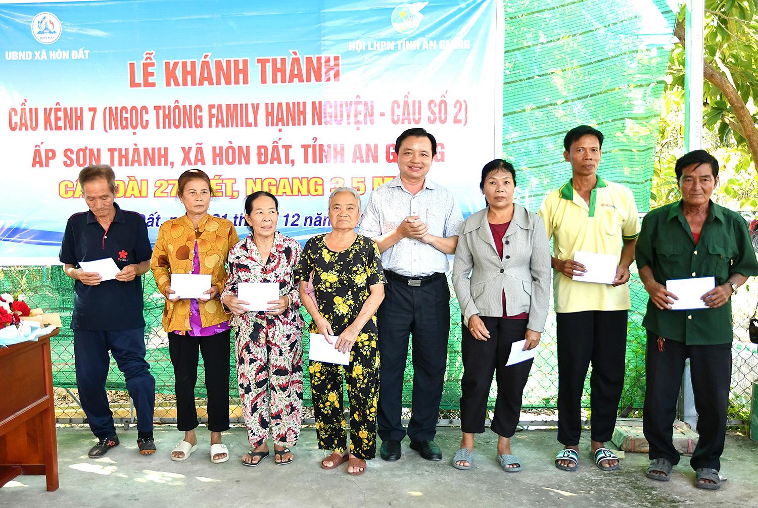 Dịp này, Đảng ủy, UBND xã Hòn Đất tặng 12 suất quà cho hộ nghèo, hộ có hoàn cảnh khó khăn trên địa bàn xã.
