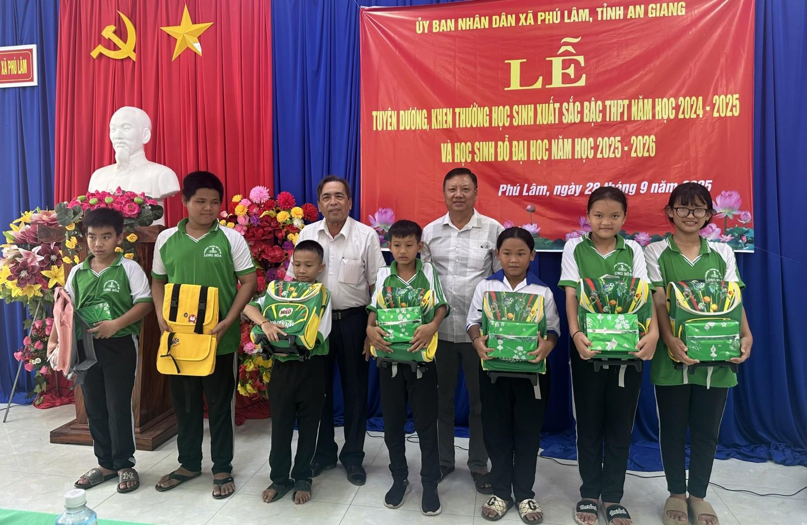 Dịp này, xã Phú Lâm trao 47 suất quà “Tiếp bước đến trường” cho học sinh có hoàn cảnh khó khăn ở cấp tiểu học và trung học cơ sở.