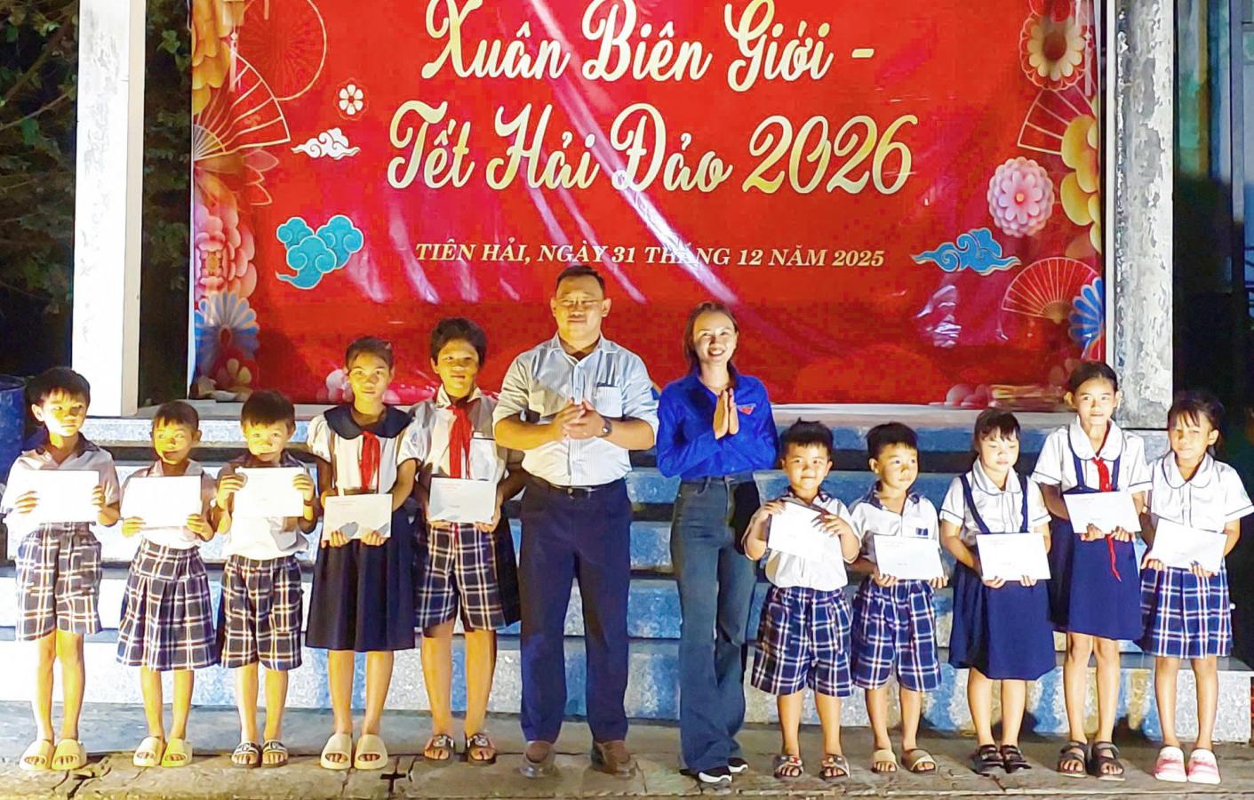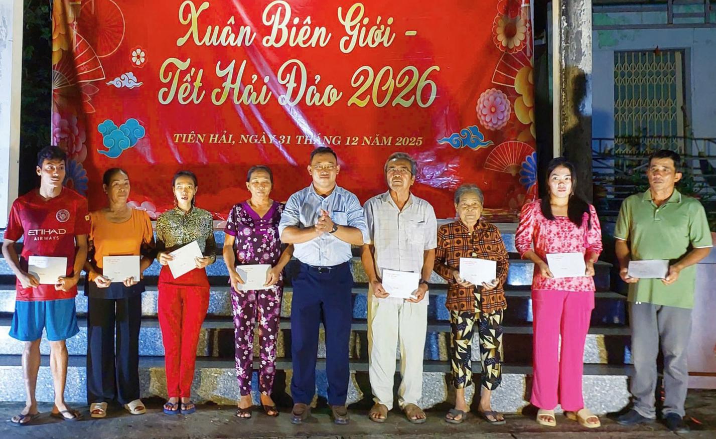 Dịp này, xã Tiên Hải trao 8 suất quà của Đảng, nhà nước nhân dịp chào mừng Đại hội đại biểu toàn quốc lần thứ XIV của Đảng và Tết Nguyên đán Bính Ngọ năm 2026 cho các hộ dân tại ấp Hòn Giang; trao 50 suất quà cho người dân có hoàn cảnh khó khăn và 10 suất học bổng cho học sinh vượt khó học tốt tại ấp Hòn Giang.