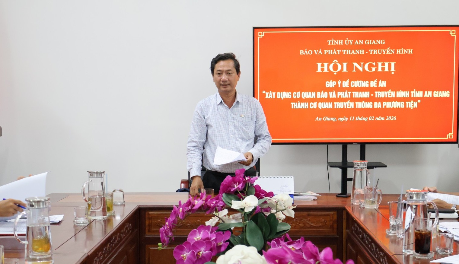 Tham dự cuộc họp có đại diện Văn phòng Tỉnh ủy, các sở, ngành có liên quan, Ban Giám đốc Báo và Phát thanh - Truyền hình tỉnh An Giang. Ông Lê Văn Chuyển, Phó Giám đốc Phụ trách Báo và Phát thanh - Truyền hình tỉnh An Giang chủ trì cuộc họp.